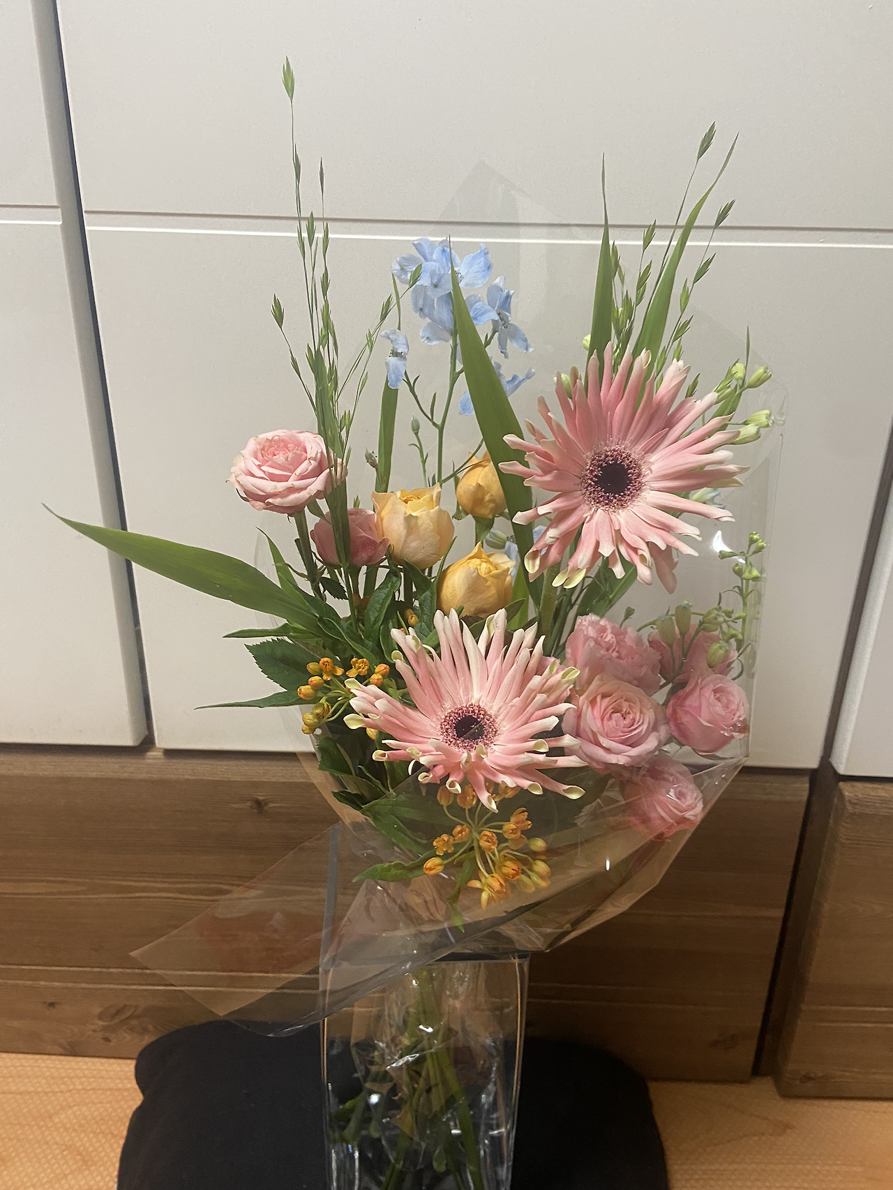 커다란 화병에 꽃다발을 꽂아 두고 사진을 찍었다. 꽃이 오래갔으면 좋겠다.