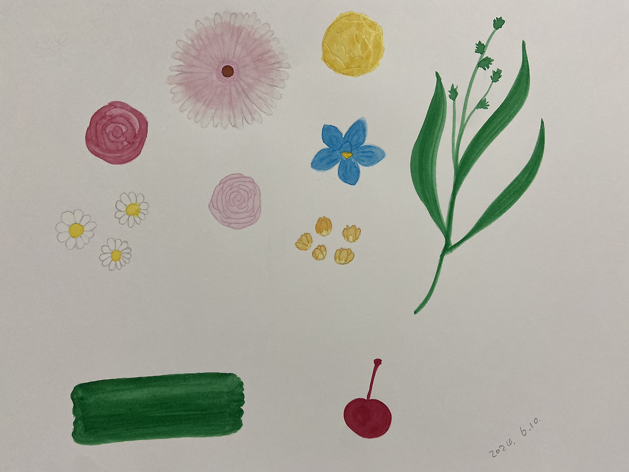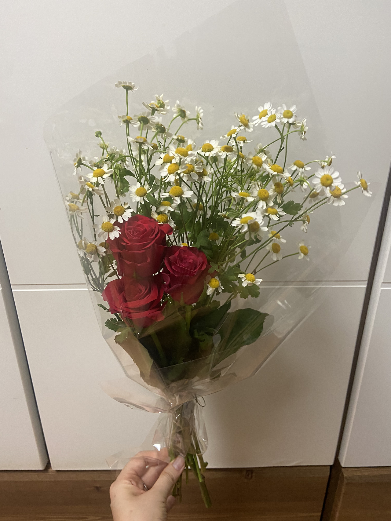 집에 가려는데 선생님께서 어제 꽃을 많이 사 왔다며 가져가라시며, 처음 보는 꽃들과 서로 다른 모양의 다양한 꽃들로 우아한 꽃다발을 만들어 주셨다. 빨간 장미와 계란을 닮은 꽃을 섞은 꽃다발은 엄마를 위한 거라며 주셨다. 감탄이 나왔다. 전혀 다른 꽃들로 어떻게 이런 조화를 만들어내실까.