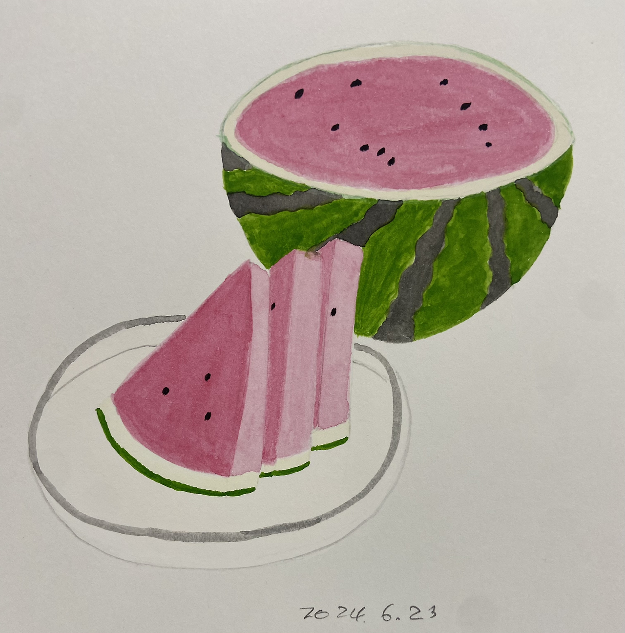 평소라면 2조각 정도 먹고 멈췄을 테지만 오늘은 5조각 정도를 먹었다. 나중에라도 또 먹을걸 하지 않게 후회 없이 시식을 했다. 다른 과일이라면 평소보다 많이 못 먹었겠지만, 수박은 거의 물로 되어 있어 ‘괜찮아. 물이니까’라고 스스로를 설득하며 많이 먹을 수 있다는 거. 그렇게 오늘 만족스러운 수박 시간을 가졌다.