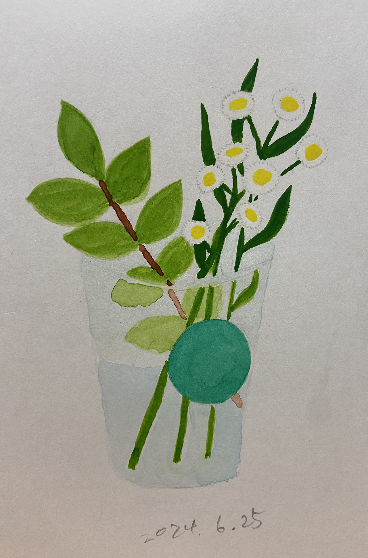 그런데 오늘, 거의 이주만에 새로운 꽃이 놓여있었다. 개망초였다. 주변에 흔히 보이는 꽃을 이렇게 실내에서 보니, 반갑기도 새롭기도 했다.