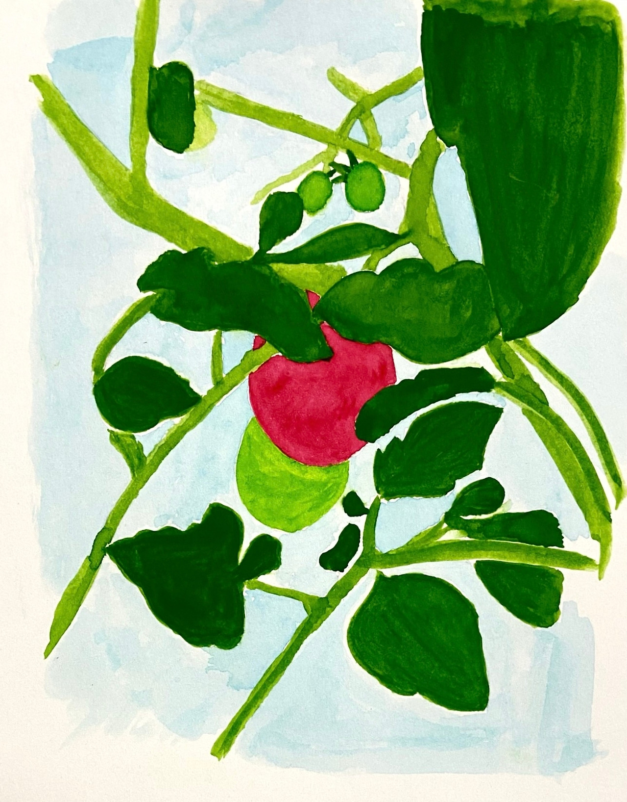 베란다에 나가 보니, 전에 본 토마토 옆 나무에 아주 빨갛고 통통하게 토마토 하나가 열려있었다. 마트에서 볼 수 있는 잘 익은 방울토마토였다. 전에 가장 크게 자라던 토마토는 아직 주황색으로 덜 익어 있었는데, 그때 보이지도 않았던 토마토는 어느새 자라 그 안에 태양을 가득 품고 있었다.