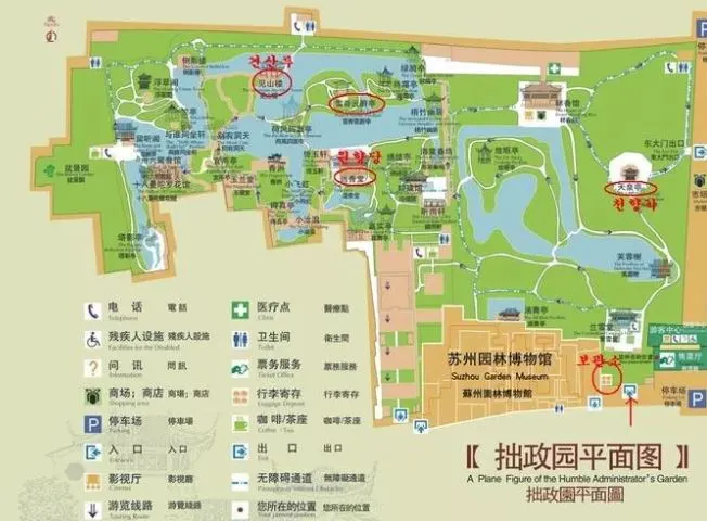 안내서를 펼치니 정원 구조 배치도가 나왔다. 대략 봐도 엄청났다. 특히나 곳곳에 연못을 만들어 놓고, 복도가 길며, 정자나 방이 많아 웬만한 수의 사람이 같이 살아도 하루 한 번 얼굴 보기가 어려울 것 같았다. 그래서 왕헌신이 정치를 하다 사람이 싫어 여기 왔겠구나라는 생각이 절로 들었다.