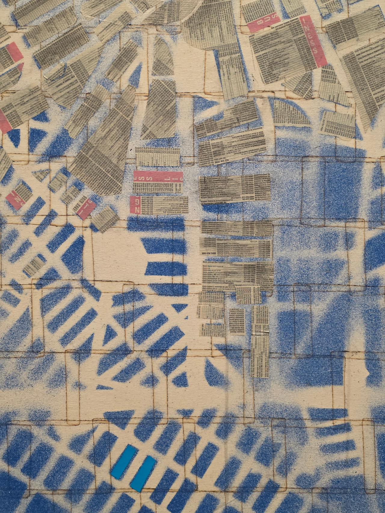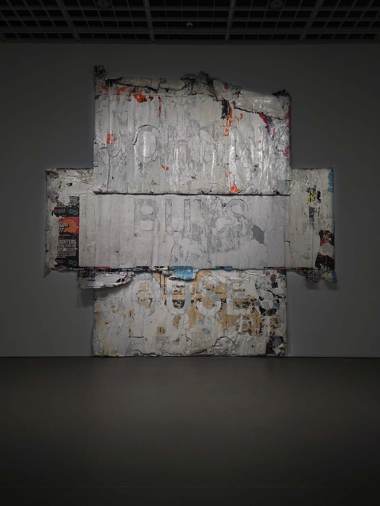 아무래도 한 작가의 수많은 작품을 감상하려면 그 작가에 대한 이야기가 궁금하고, 실제로 그 이야기를 모르면 이해하기 좀처럼 어려운 작품들도 많습니다. 그러나 이 전시는 사전 정보 없이 가더라도 작품과 캡션을 읽으며 전시를 따라가는 것만으로 작가에 대한 어느 정도의 정보는 알 수 있습니다. 작가의 출신과 배경이 곧 작품의 배경이 되기 때문이죠. 전단지, 신문지, 그리고 그가 어머니의 미용실에서 일할 때 매일 보고 사용했을 파마 용지(end papers) 등 거리에서 쉽게 볼 수 있는 재료들은 그가 전하고자 하는 메시지뿐만 아니라 자신의 정체성까지 전달하는 충실한 전달자가 됩니다.