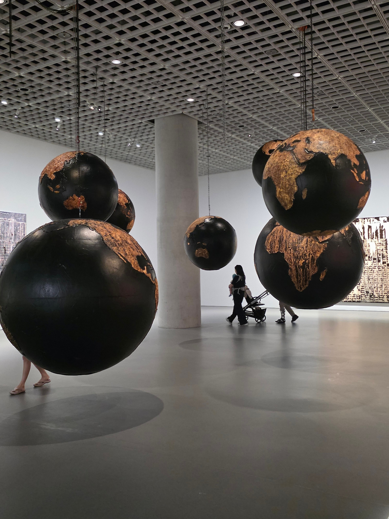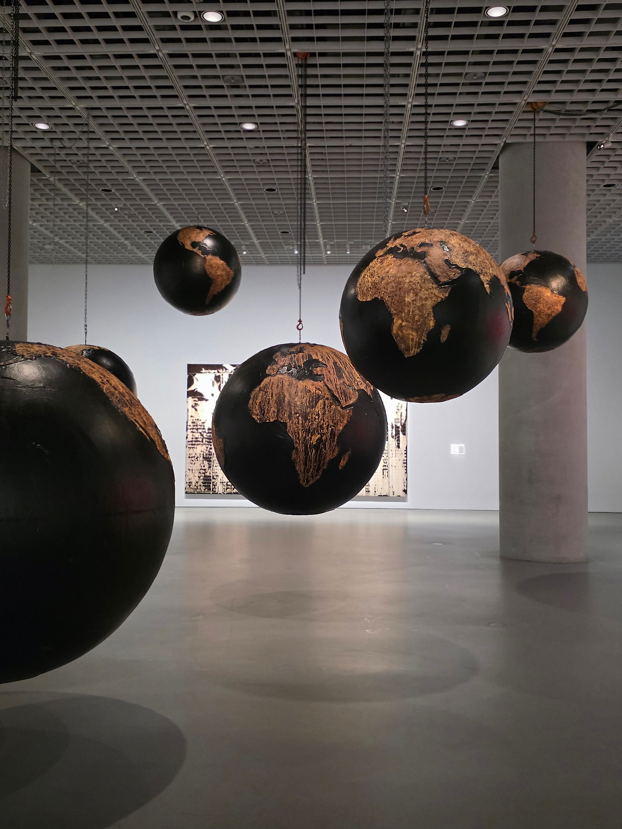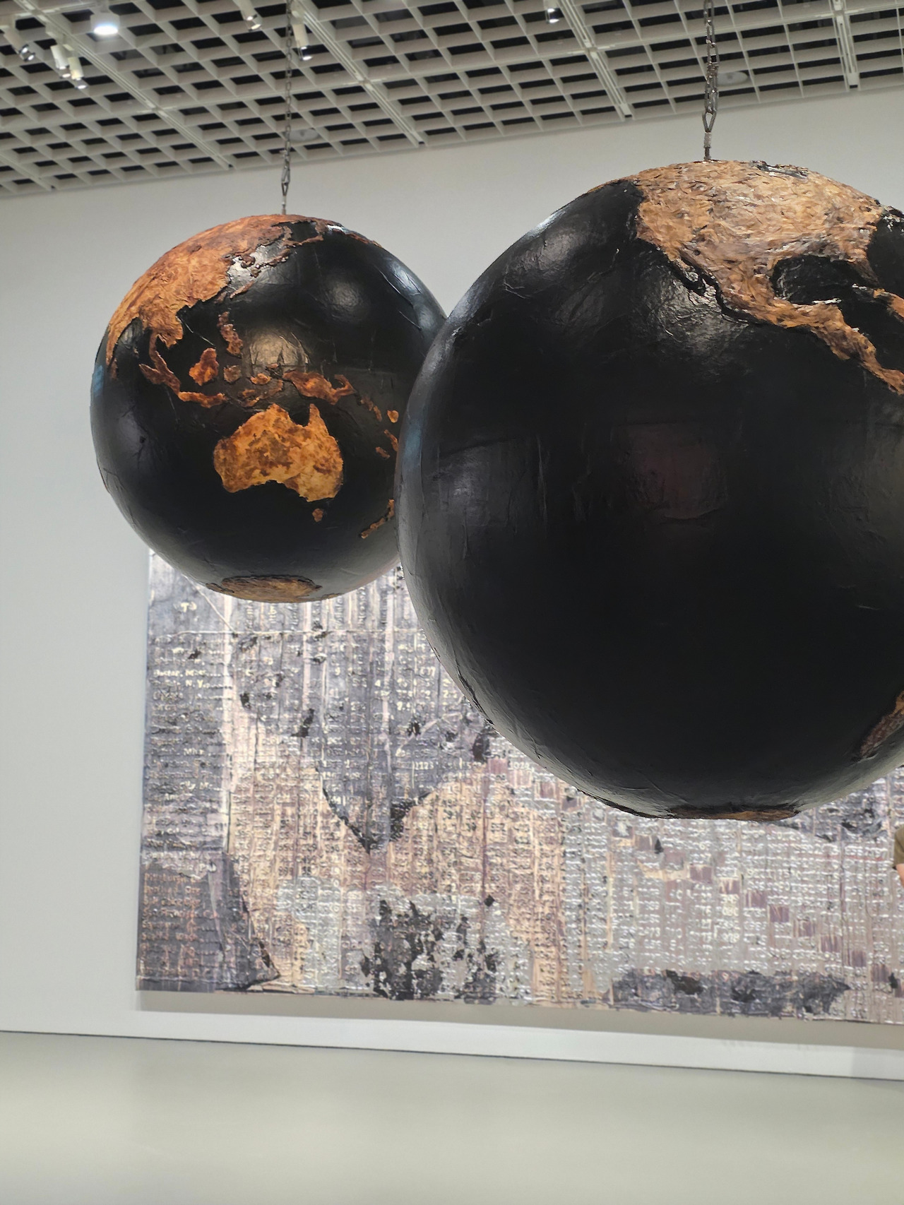 ‘왕좌의 게임’에 등장하는 대사를 차용한 긴 제목을 가진 이 작품은, 모두 합쳐 펼쳐보면 세계 지도가 될 국가들이 불탄 구체에 담겨 있습니다. 그 사이사이를 살피다 보면 ‘세계는 하나’라는 말이 얼마나 허상인지를 느낄 수 있릅니다. 그 어떤 때보다 서로 쉽게 연결되는 세상이지만, 그 사이의 간극이 얼마나 큰지, 또 어떤 나라에 속하는지에 따라 경제적 ∙ 생태적 위기를 체감하는 정도가 얼마나 다른지를 알 수 있습니다. 현재도 전쟁으로 고통받는 나라와 웃고 있는 나라들을 떠올려보면, 결국 모든 세계를 하나로 묶는 건 인간적 위기 뿐일지도 모른다는 생각이 듭니다. 모두가 불타 가라앉는 속에서 마지막까지 웃는 자리를 차지하려 다른 나라를 밟고 올라 애쓰는 행위가, 과연 무슨 의미가 있을까요? 이 작품의 구체들은 그 어떤 웅변보다 큰 울림으로 이러한 질문을 가슴에 박아 넣습니다. 국가가 아닌 개인과 개인 간의 관계로 치환해 해석해도 울림이 다르지 않기 때문일 겁니다. 안 겪어봐서 모르는 세상을, 이렇게나마 발견합니다.