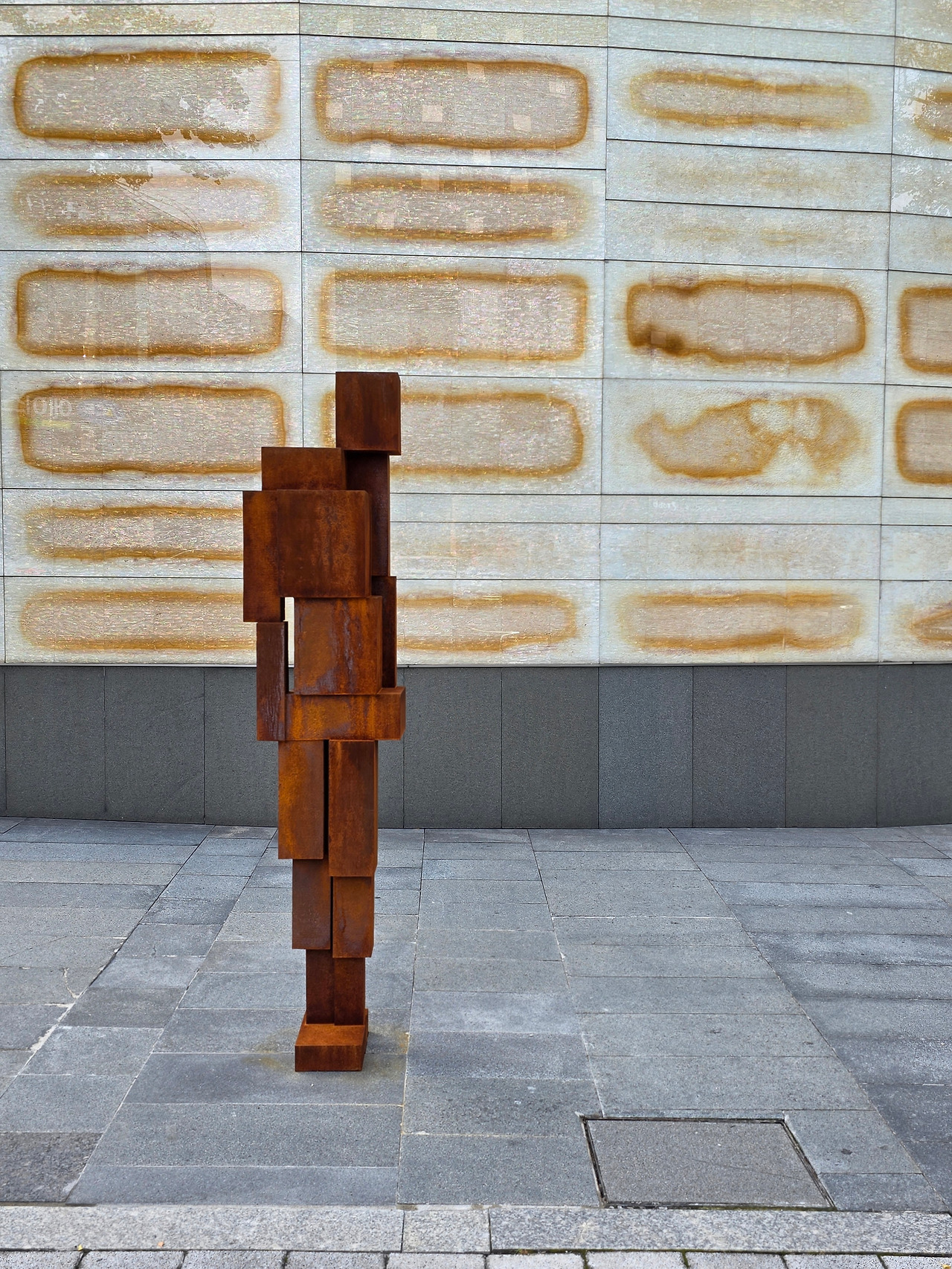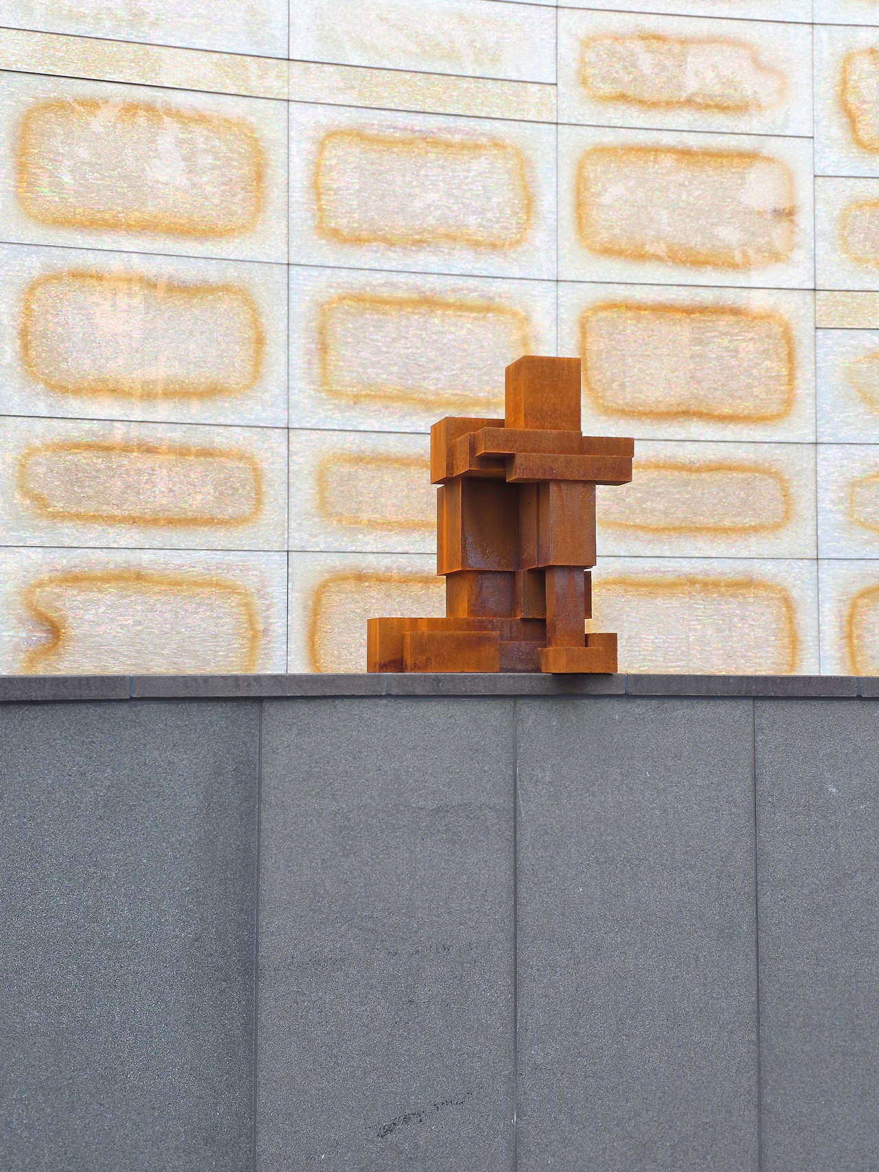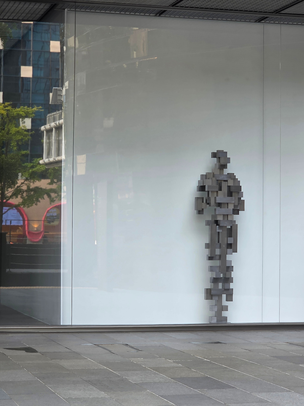 긴장과 압박이 느껴지는 스트레스풀한 작품, 오그려 앉아 고뇌하는 듯한 작품 등은 뮤지엄 산에서 만났던 해방감 가득한 작품들과 상당히 대조적입니다. 공간과의 시너지를 느껴보라는 작가의 의도 그대로, 갤러리 내부에는 작품들이 적적하게 서서 도식화된 도시 공간에 적응한 인간 군상을 그대로 그려내죠. 갤러리 밖에 있는 작품들은 더욱 외롭고 고독해 보입니다. 도시의 일상에 다소 찌든 우리 모습과 다르지 않습니다.