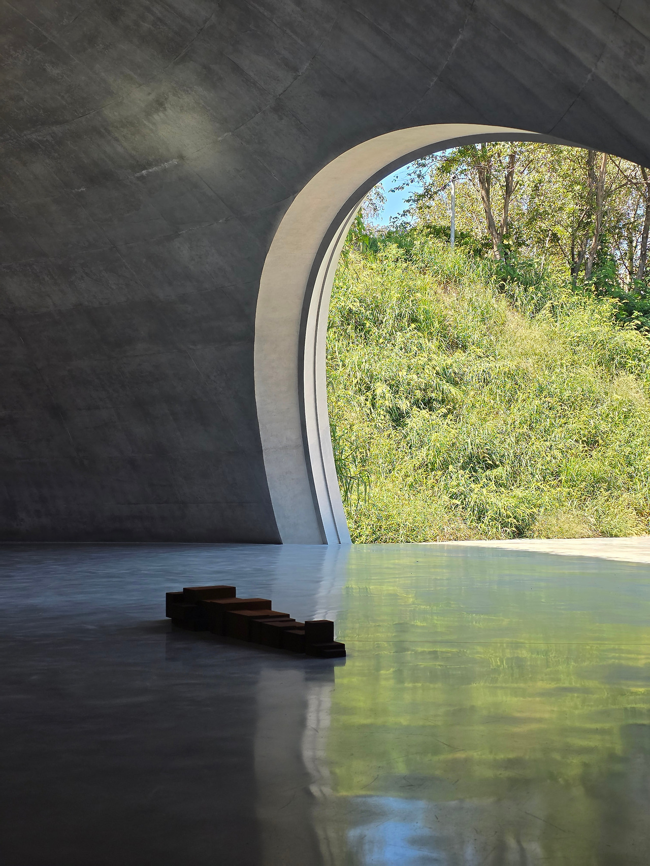 세 곳의 전시 모두를 경험하지는 못했더라도 갔던 모두가 극찬했던 곳은, 역시 뮤지엄 산의 전시 공간이었습니다. 뮤지엄 산의 전시공간 중 별관처럼 지어진 실험적인 공간 <GROUND>는 유명 건축가 안도 타다오(Tadao Ando)가 설계해 공개 이전부터 기대를 모았는데요. 마치 곰리의 작품을 위해 지어진 듯 작품의 완벽한 무대이자 화룡점정으로 작품을 완성시켜준 거의 모든 것이었습니다.