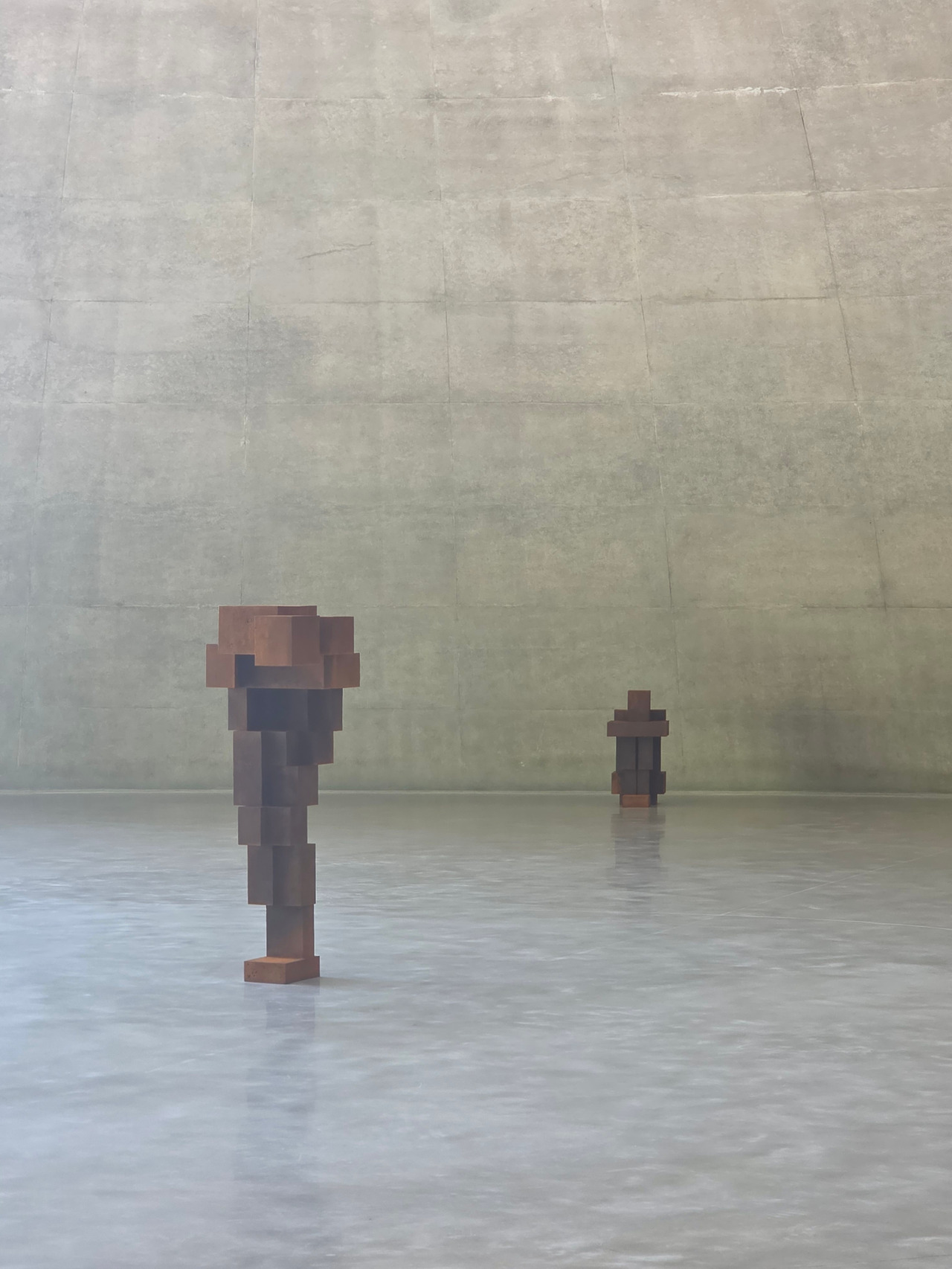 그러나 이 공간에서 만난 곰리의 작품은 전혀 다른 느낌이었습니다. 작품 그 자체보다는 배경과 작품이 어떻게 어우러지는지를 느낄 수 있었고, 나 자신이 작품 중 하나, 자연의 일부가 되는 경험을 할 수 있었습니다. 그 중 웅크려 앉은 작품은 귀엽기도 했는데, 거대한 자연과 건축물 사이에 오히려 압도당한 인간의 모습 같아 마음이 갔습니다.