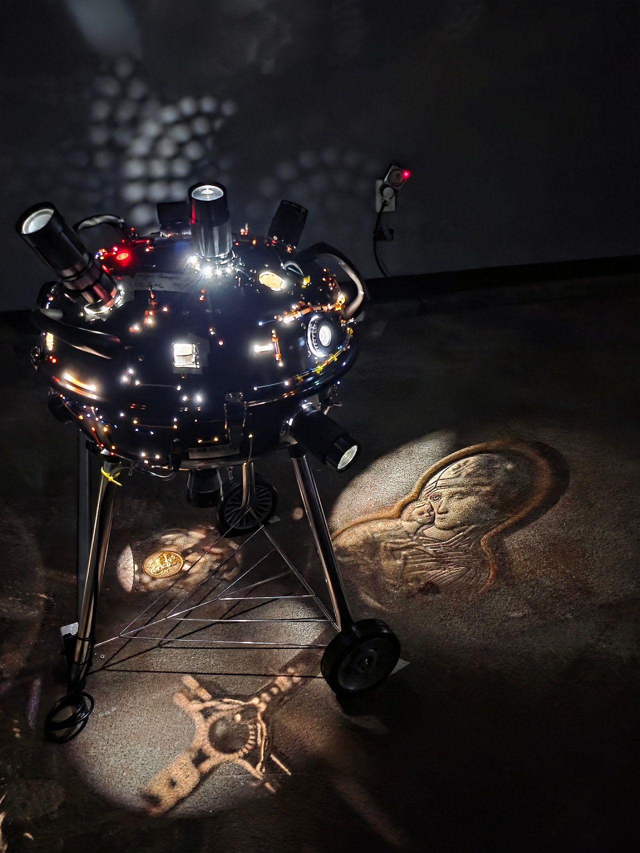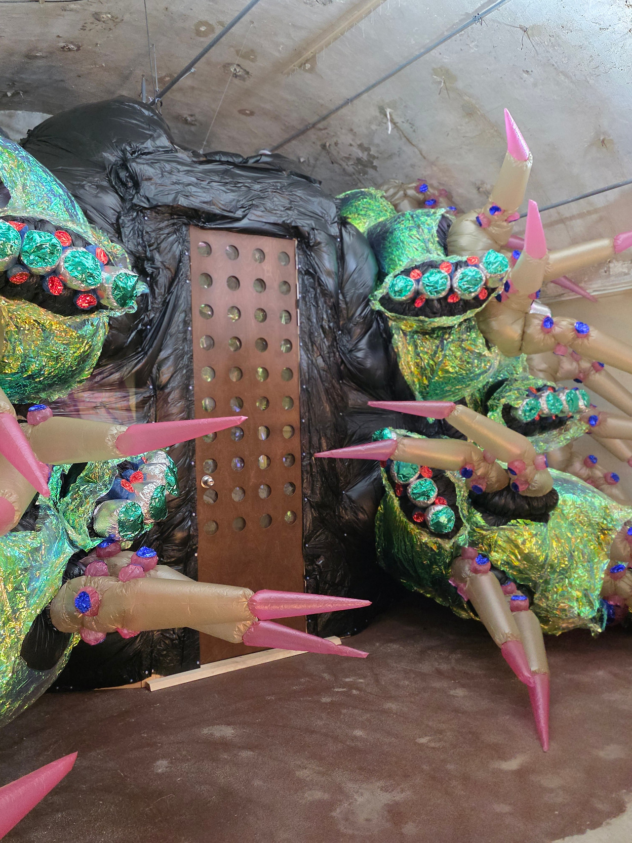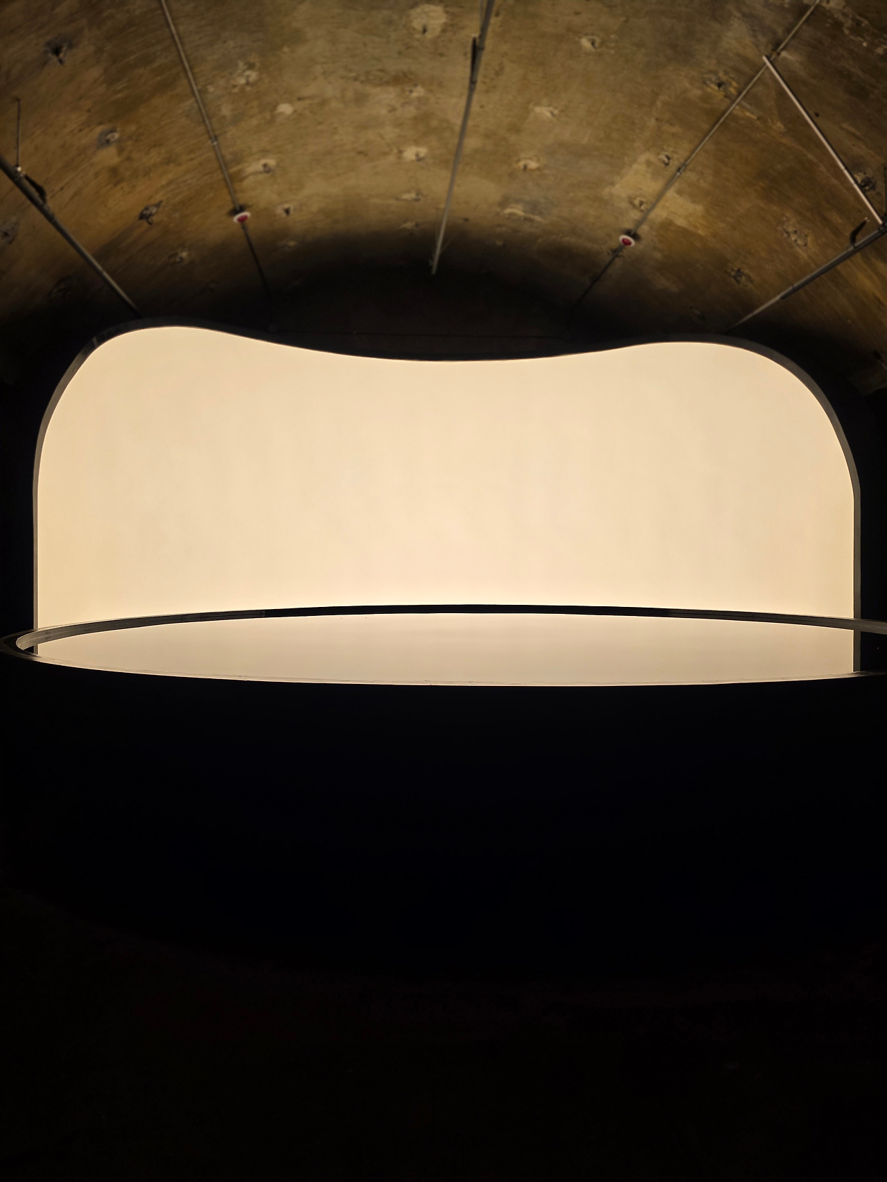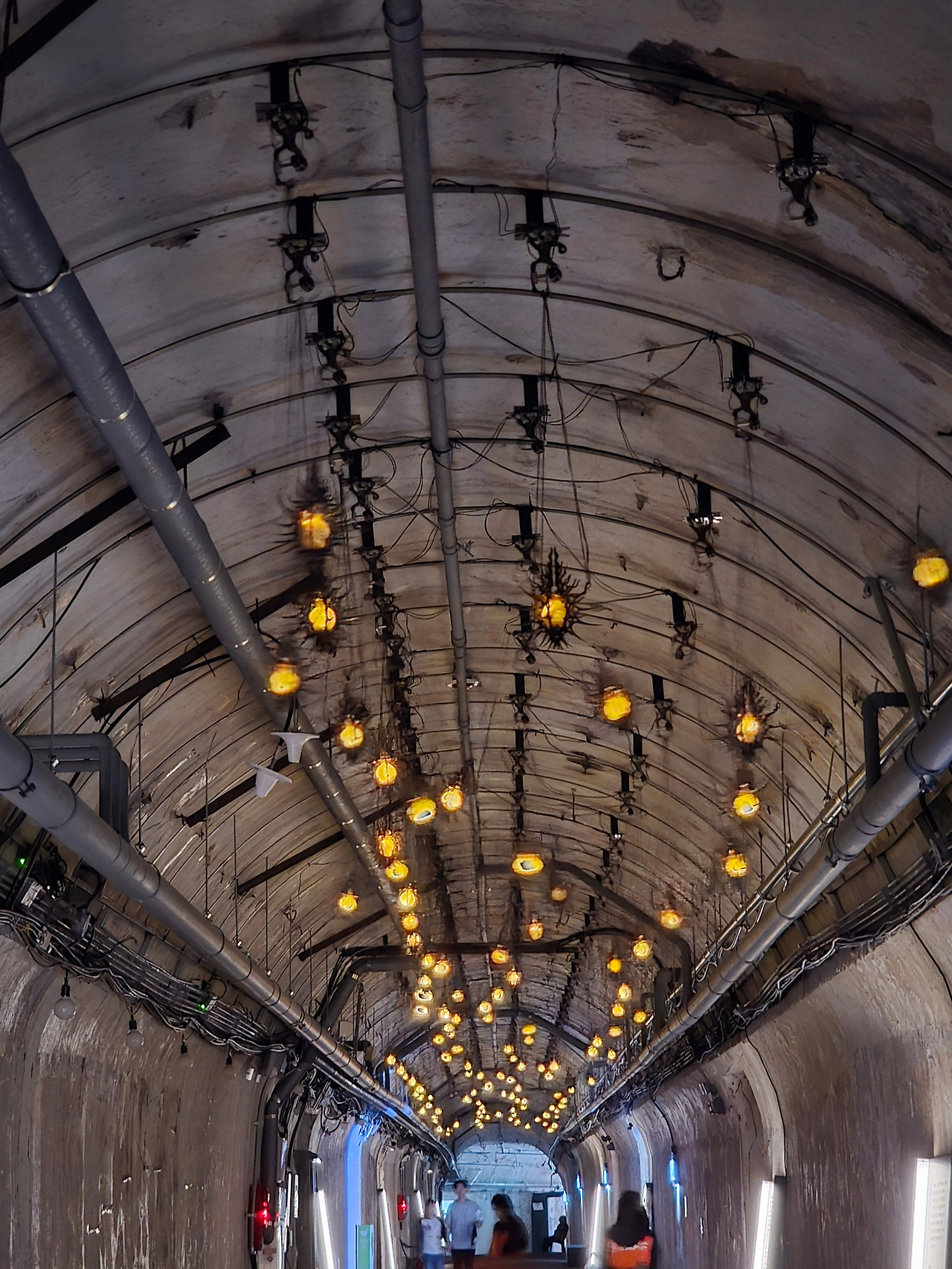 다만 처음 들어가면 작품은 어디에 있는지 보이지 않고 빛나는 밤송이 같은 것이 천정에서 흔들리는 것만 눈에 띄어 전시에 대한 궁금증이 더해졌습니다. 최우람 작가의 <비밀의 추>라는 이 작품은 감각적으로 어둠 속에서 도사리고 있는 미지의 생명체처럼 보이는데, 그것이 이 터널의 태생과 맞물려 원래의 자연이 가진 눈빛과도 같아 보입니다. 인간이 자신들의 목적을 위해 자연을 파괴하고 이곳을 지었으나 언젠가는 회복될 생명의 비밀함과 힘을 보여주는 것 같죠. 다만 정지해 있지 않고 계속해서 흔들리고 있어, 위태로움과 인간이 제어 불가능한 힘을 동시에 느낄 수 있습니다.