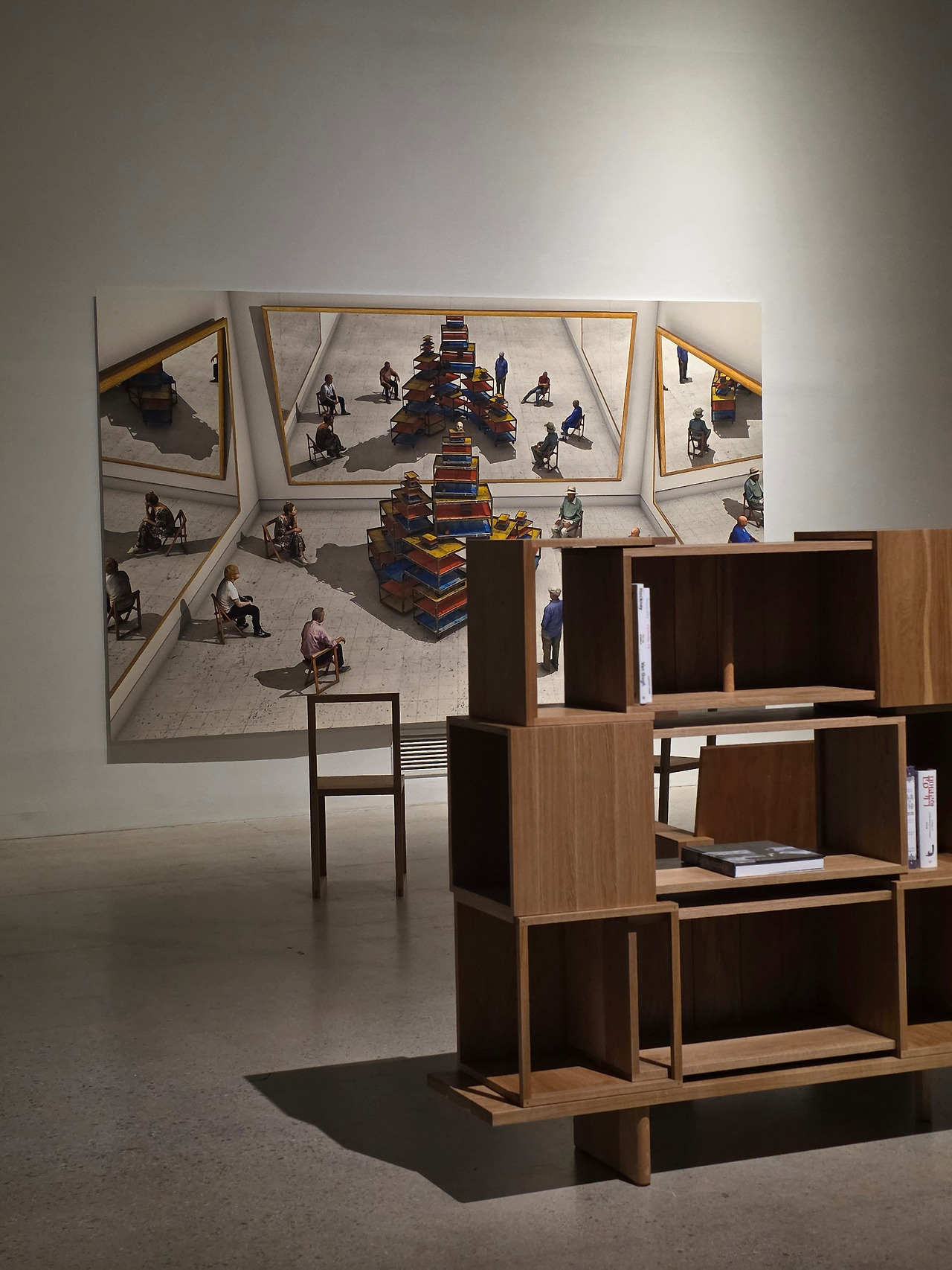 전시 서문의 제안이 감각적으로 구현된 전시장 안은 채도가 적당히 빠진 공간에 적당한 조도의 개별 조명, 그냥 가구라고만 부르기가 미안한 조형적 아름다움을 지닌 가구들, 그리고 유명 인사들의 큐레이션으로 책들이 가득 채워져 있었습니다. 보통 가구와 함께 작품이 놓인 전시는 가구가 곁들임 반찬처럼 놓인 경우도 많았으나, 보기 드물게 기능적 역할과 오브제로서의 역할을 다하는 집의 일부로 자리한 것이 인상적이었습니다.