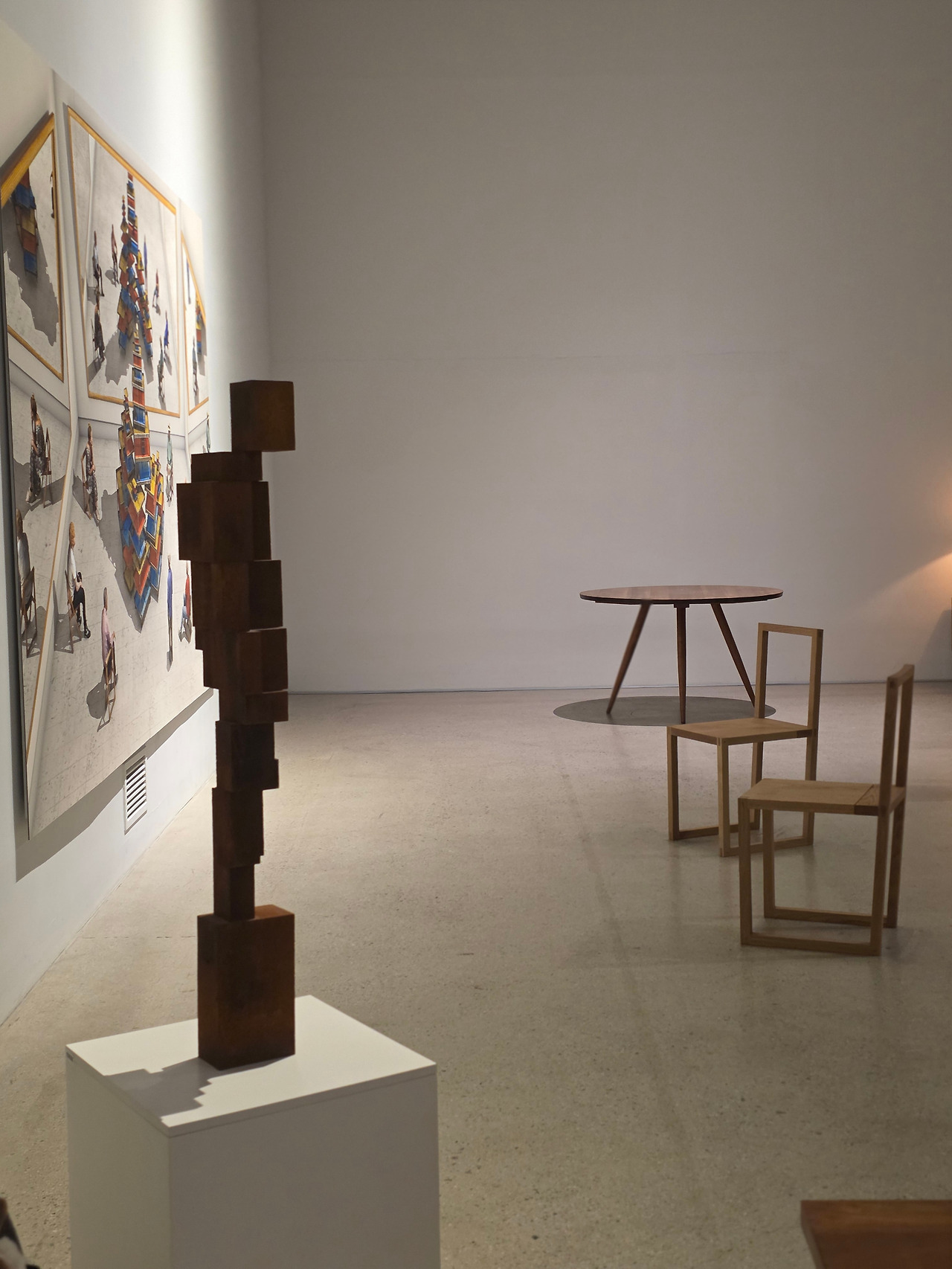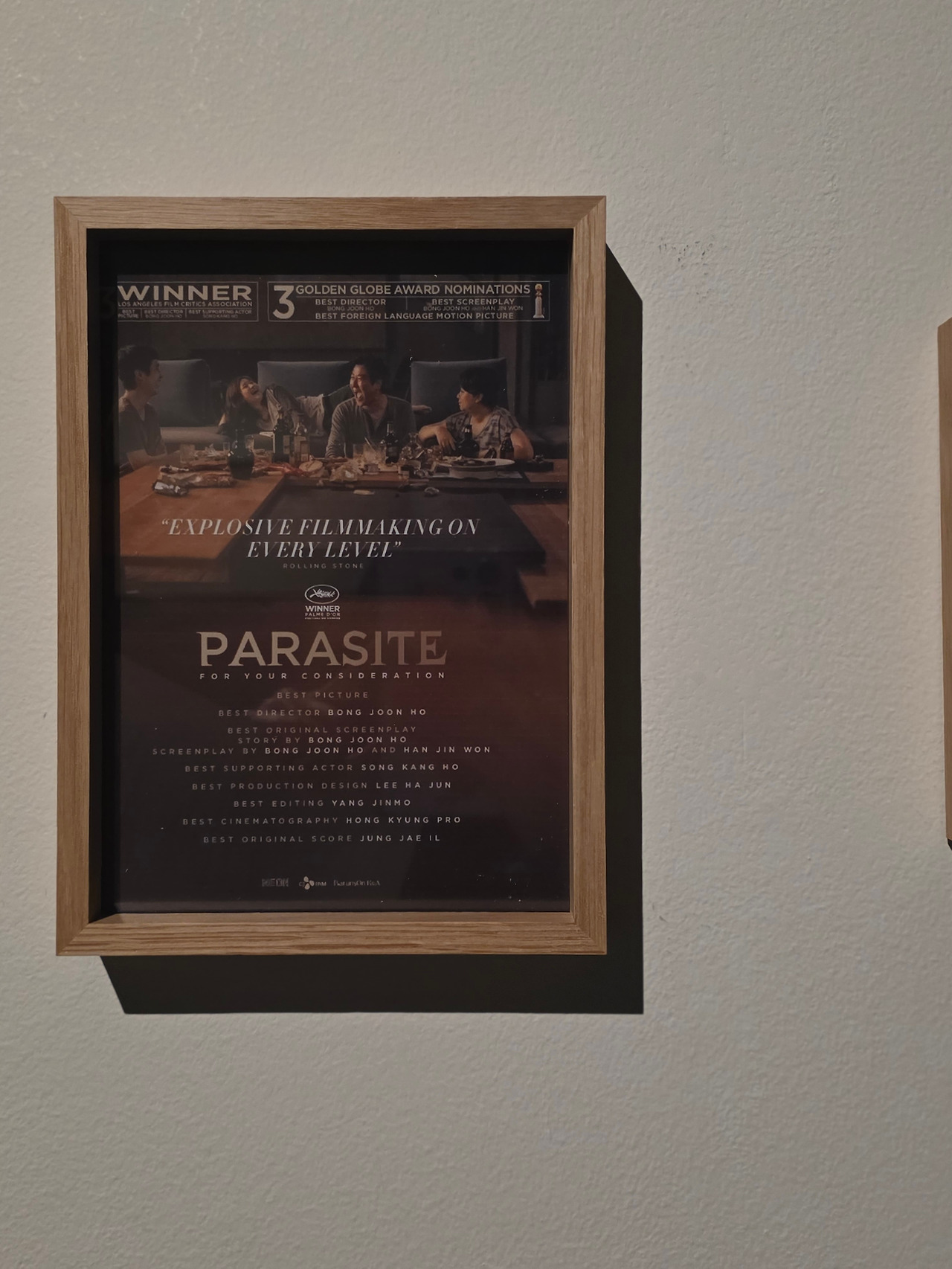 여러 작품들 속에 단연 눈에 띄는 것은 전시장 가장 안 쪽 룸에 위치한 가구- 영화 <기생충>의 소품으로 쓰였던 바로 그 가구입니다. 정보를 보기 전에 테이블을 먼저 보았기 때문에 ‘어? 익숙한데...’하면서 디테일을 뜯어보았습니다.