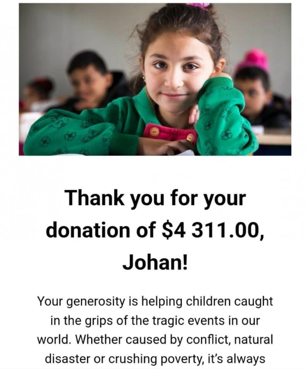 비록 신규장비이자 좋은 무기는 구할수없게되었지만 4.311명의 어린이와 민간인을 구했다는 뿌듯함과 보람을 유저들은 느꼈고 사진을보고 충분한 보상이라며 말을모았다. 이를본 헬다이버즈 게임사의 CEO 필스테드는 감동하며 당시 참가했던 7만명의 유저들을 모두 기록해서 세이브더칠드런에 구한 아동만큼 실제로 기부를 하며 헬다이버즈 유저들의 버넌웰스 사건은 마무리된다.