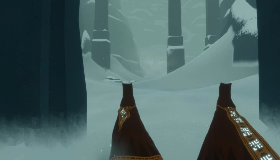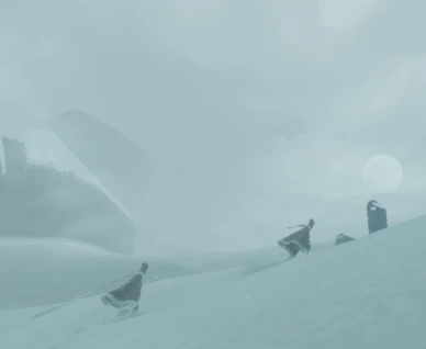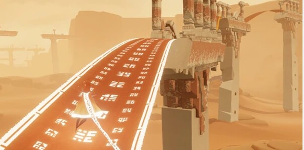 저니라는 게임이야기다 . 직역하면 여정 또는 여행이 되는데 이게임은 어떠한 코멘터리도 대사도 없다. 그저 게임을 켜면 사막한가운데에 캐릭터하나가 깨어나게되고 이 캐릭터는 최종목적지에 위치해있는 산을 바라보며 많은 장애물과 퍼즐을 해결하며 나아간다.
