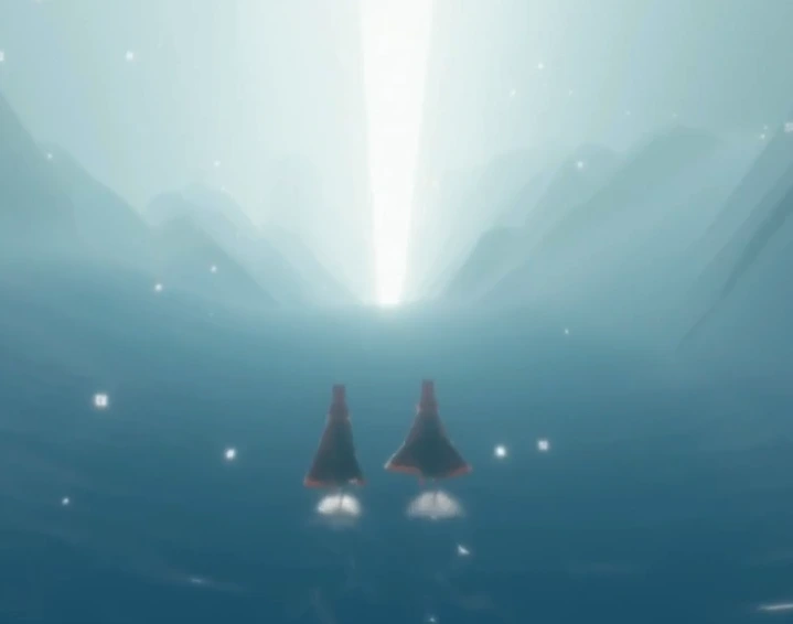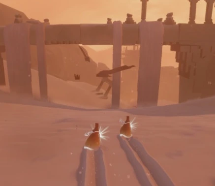 아무것도 모른체로 게임을 진행하며 만난 NPC는 유저의 마음을 읽기라도하듯 유저에게 손발을 맞춰주고 때로는 신호를 보내서 유저가 길을 헤매이지 않도록 도움을 주기도하며 같이 힘든 난관을 걸어가며 유저와 합을 맞추고 때로는 서로 주위에서 폴짝거리기도하며 바로 점프가 안되면 옆에서 신호를 보내며 웃어보기도하며 또는 NPC가 뒤쳐지는 경우도있는데 조용한 사막속 그 NPC와 함께하고싶어 기다리기도하고 플레이어가 NPC를 도와주며 서로 같이 올라가게된다.