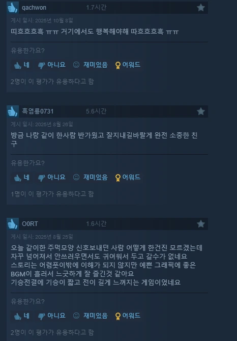 게임의 감상평을 보면 모든 사람이 비슷한 감정을 느꼈던것을 알수있다.