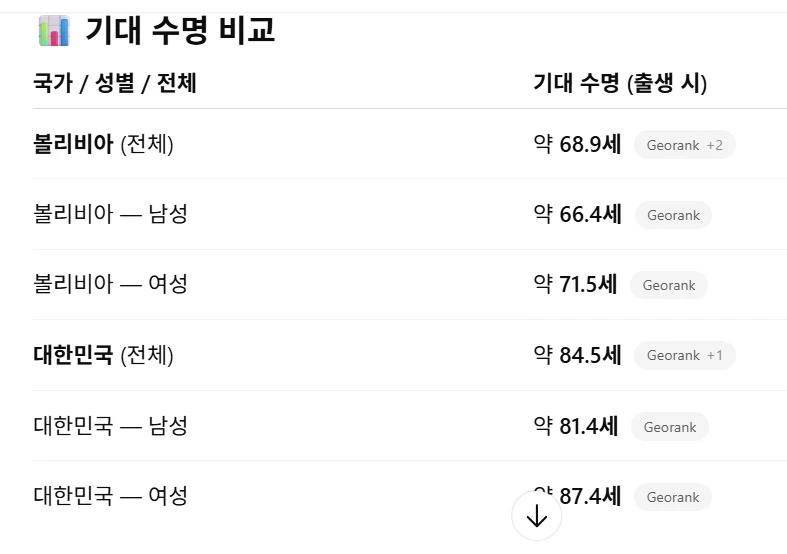 실제로 내가 아는 친구들만 해도 이미 부모님을 지병으로 잃은 경우가 적지 않다. 친한 친구들만 세어도 세 명이 최근 몇 년 사이에 아버지나 어머니를 잃었다. 그 빈도가 한국에서의 경험과 비교하면 분명히 더 높다는 생각이 들었다. 실제 평균 수명을 찾아보았다. 한국은 약 84세, 볼리비아는 약 68세로 거의 20년 차이가 난다.