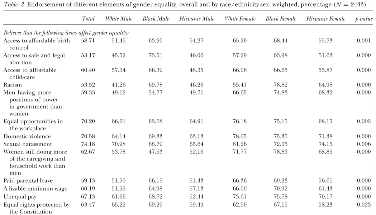 Race/Ethnicity and Sex Differences in Attitudes Toward Policies for Gender Equality in the United States
