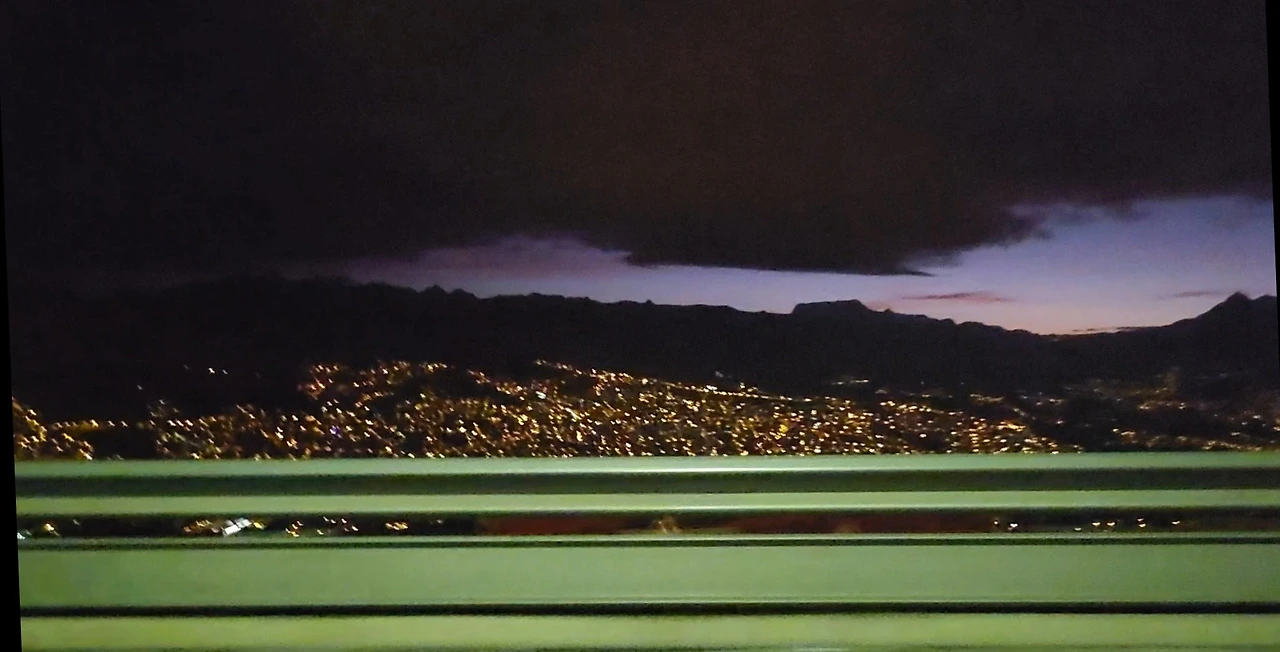 라파즈 공항에서 볼리비아에 머무는 친구의 집으로 향하는 길. 도로 너머로 어두컴컴한 촌락에 정체 모를 수많은 불빛이 너무나도 아름답게 수놓아져 있었다. (가로등일까?)