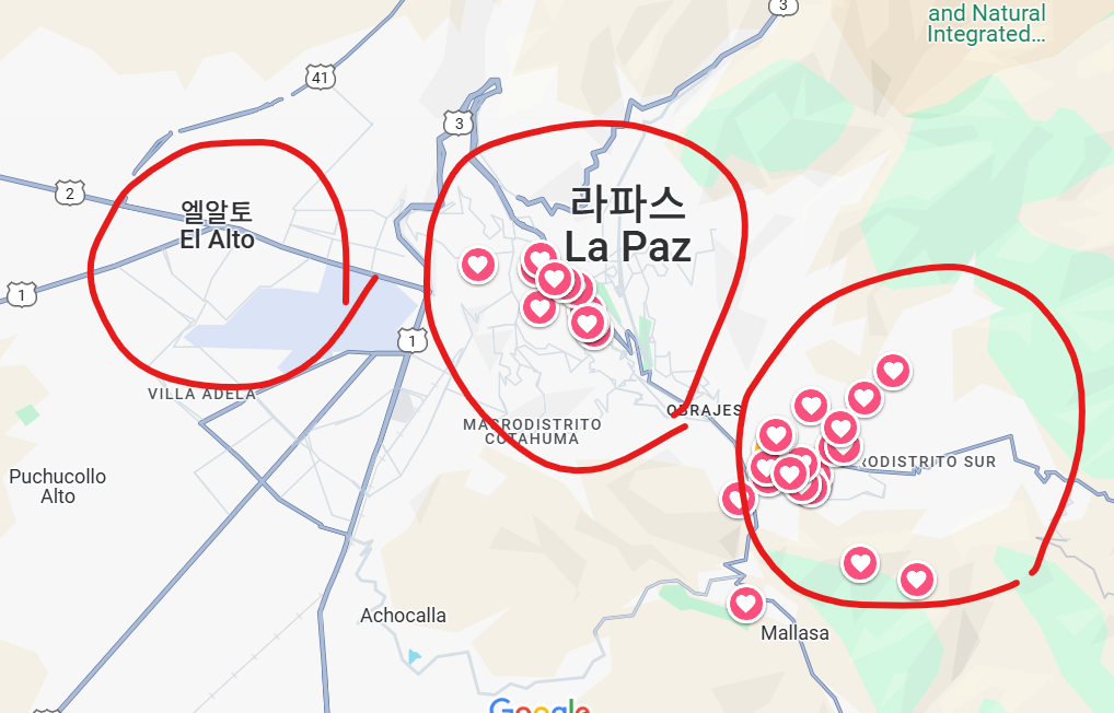 왼쪽 동그라미부터 엘 알토, 센트로, 조나 술이다. 세 가지 지역을 기준으로 설명해보고자 한다.