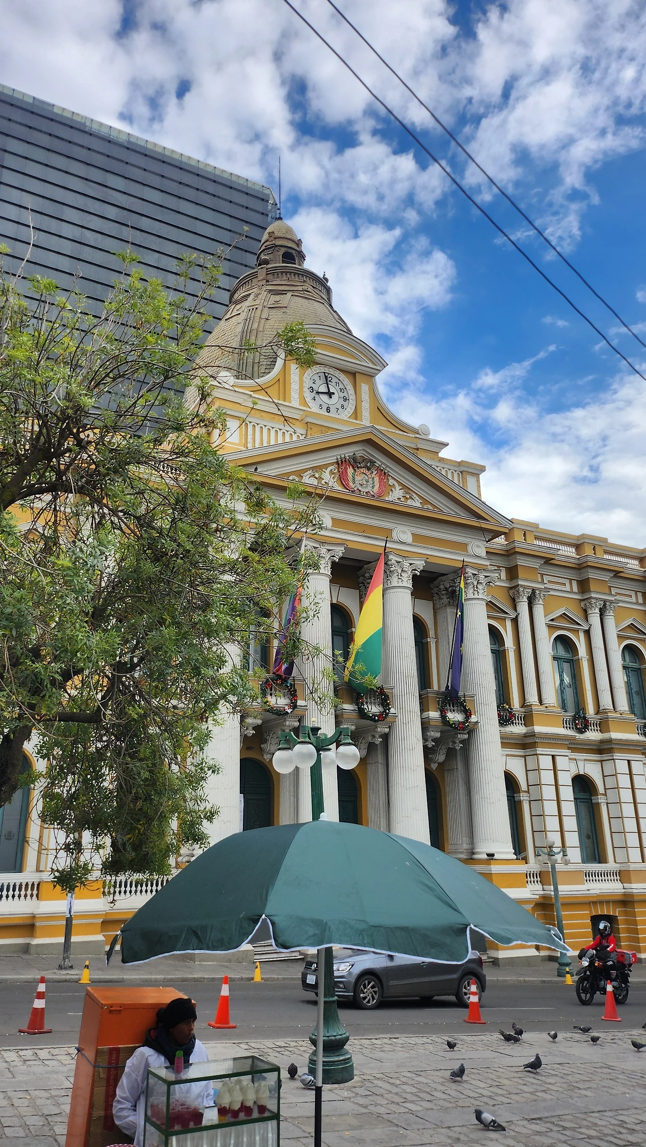 5. 대통령궁과 국회의사당을 볼 수 있는 곳이다. 국회의사당의 시계에 숫자가 반시계 방향으로 적혀 있으며, 이는 미국 중심의 신자유주의적 가치관에 반하며 남반구 중심의 사고관을 가지자는 의미를 지닌다고 한다.