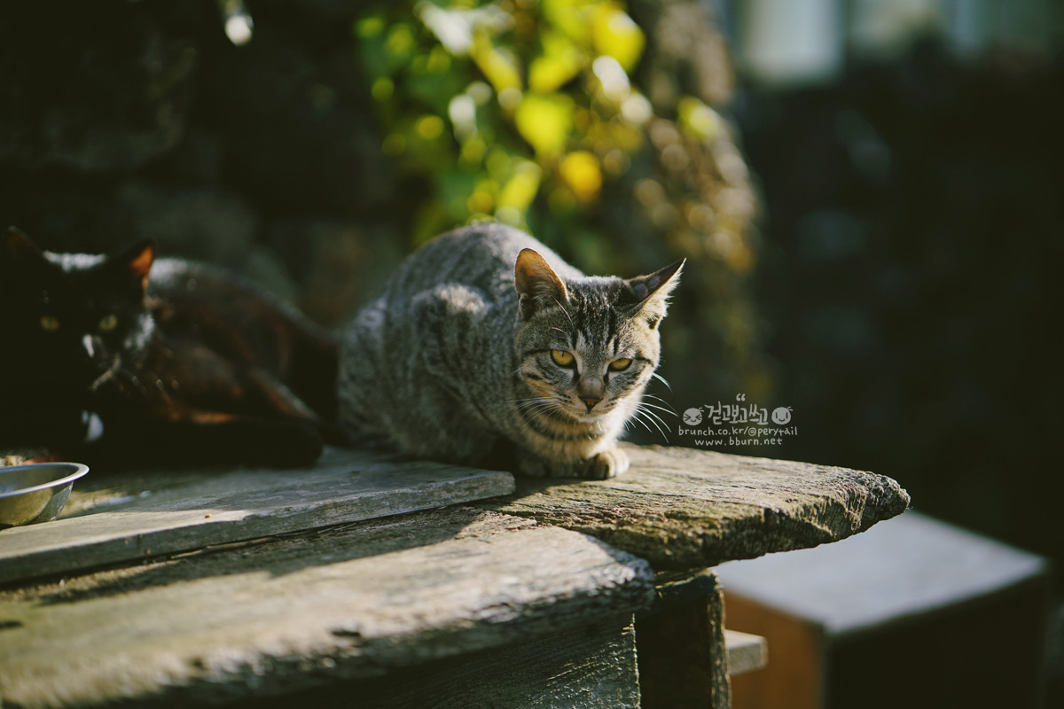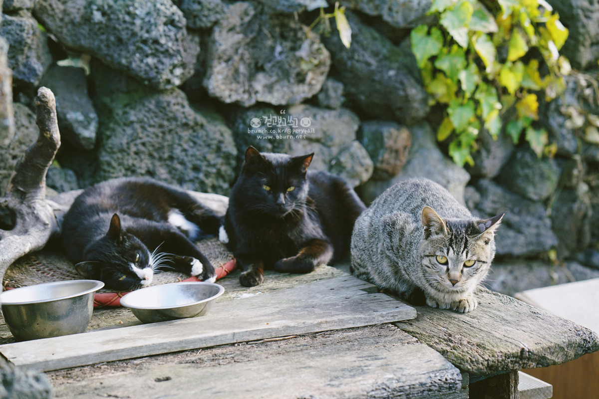 밥을 다 먹은 고양이들과 인사를 하고