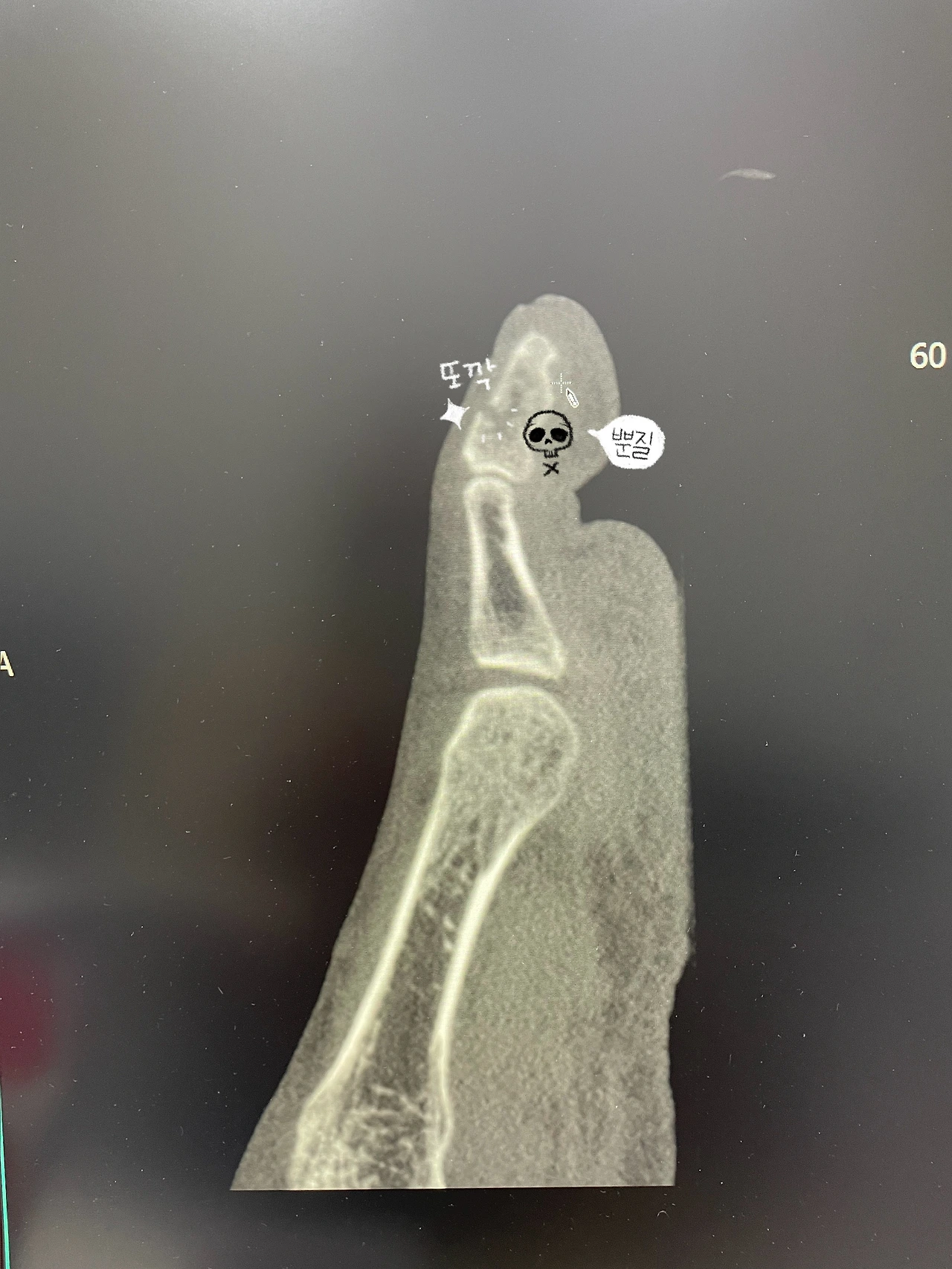 발가락 전체가 부러진건지 확인하기 위해서 다시 CT를 찍었는데
