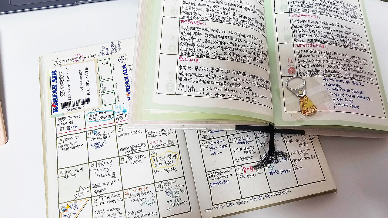 늘 내 책과 작업을 좋아하는 사람들은 나와 비슷한 사람들이라 생각했는데(실제로 온라인에서 보면 좋아하는 노래나 가수, 스타일 이런 게 대부분 비슷하다.) 기자님이 쓰신 빽빽한 시간기록장 보며 다시 한번 동질감을 느꼈다. 나도 다이어리 안에 빼곡히 기록하고 정리하니까.
