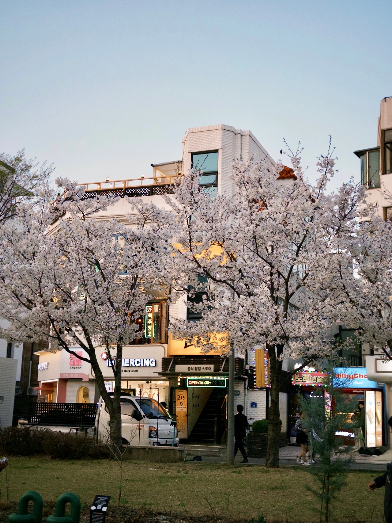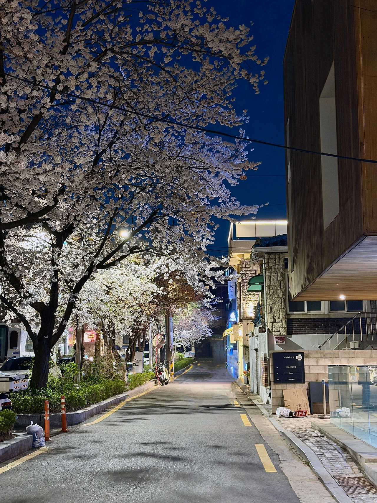 연남동 벚꽃길은 만개한 벚꽃도 있고 아직인 나무도 있습니다.