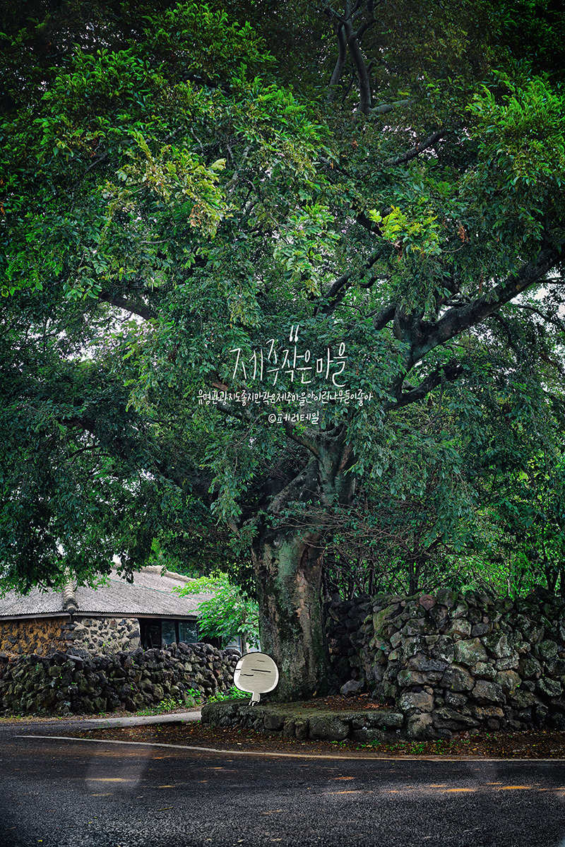 이곳은 유명한 관광지도 아니고 그냥 제주의 작은 마을이다. 내가 제주를 좋아하는 이유 중 하나가 작은 마을을 걷다 (무심하게 서있는 오래된) 큰 나무를 만나는 일이다. 그냥 작은 마을을 산책하다가 이런 나무를 만나면 나는 '와아'하는 감탄을 하며 꼭 그아래 서본다.