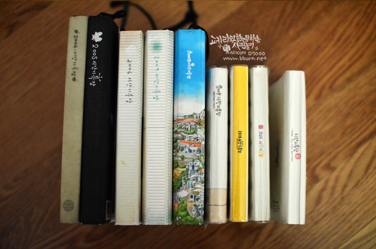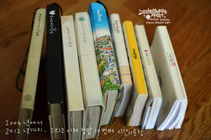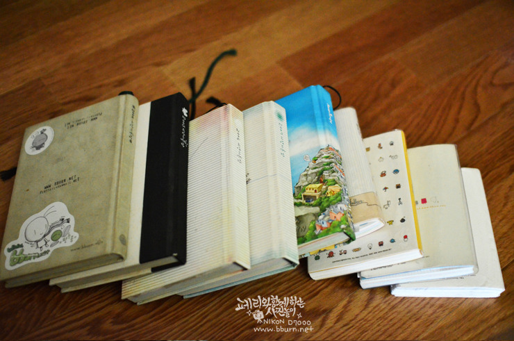 10년 가까이 세 권의 (커다란) 가죽 다이어리를 사용했습니다.