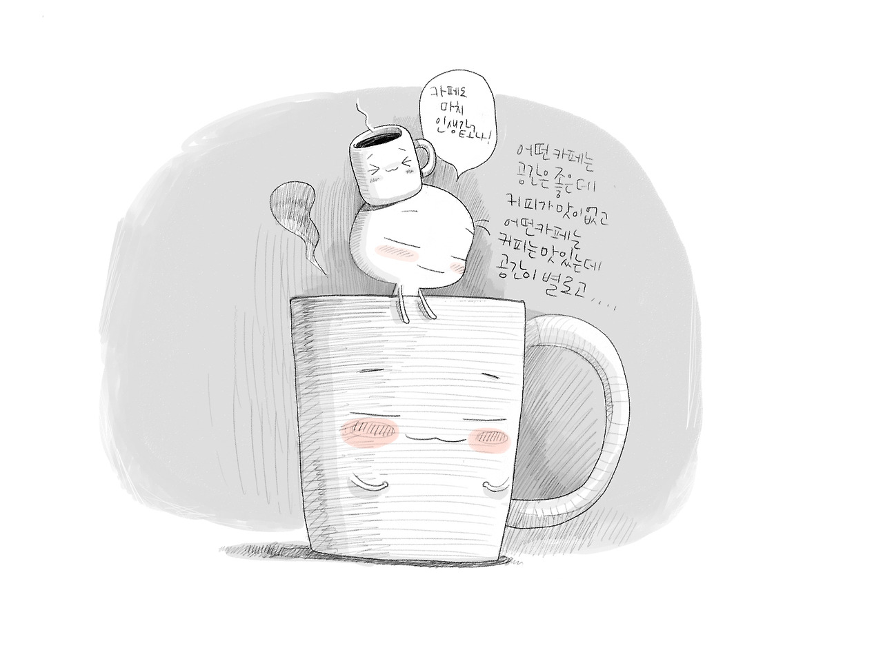 커피를 마시면 커피맛이 훨씬 더 좋을 듯,