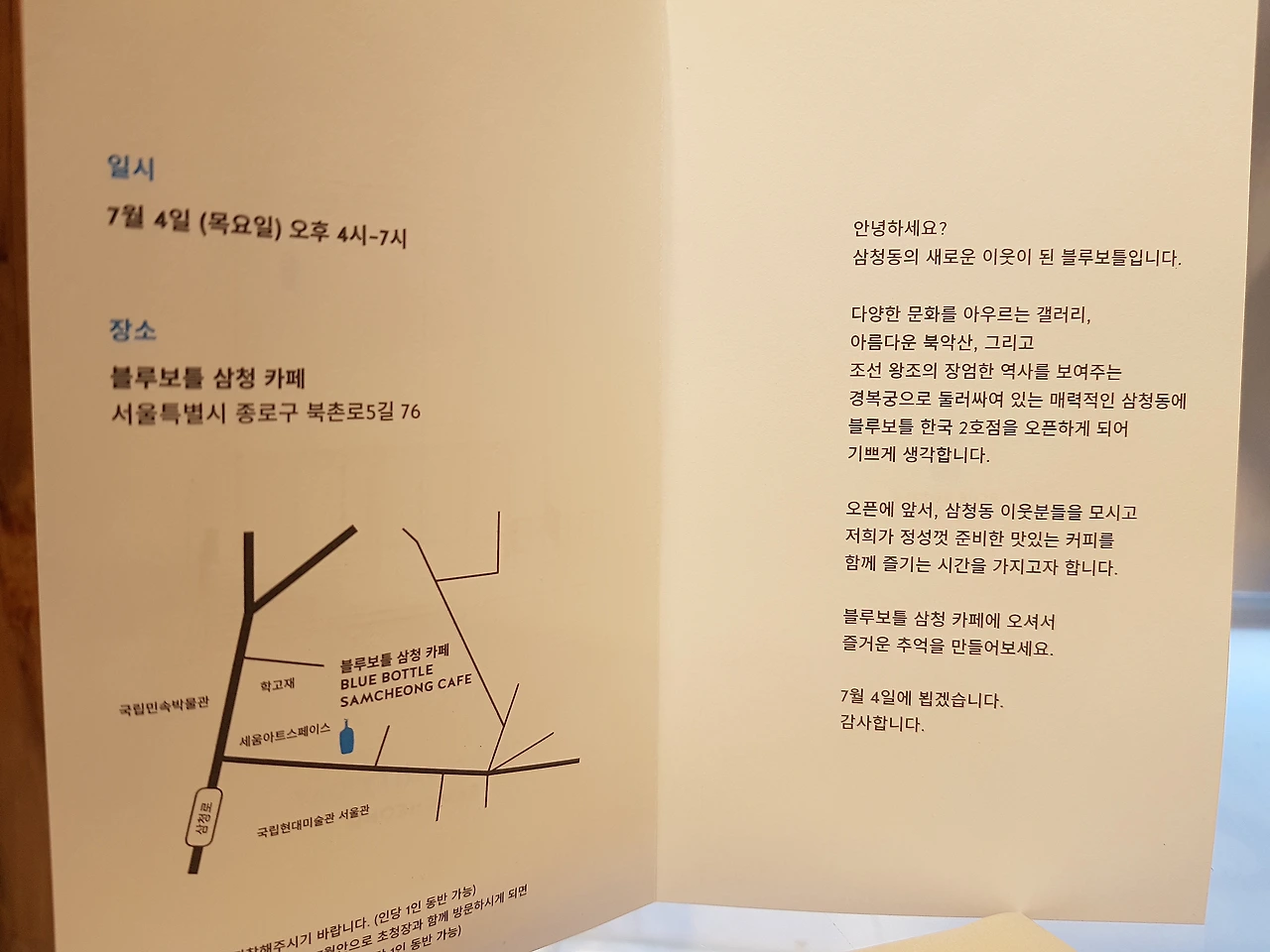 < 삼청동 블루보틀 >