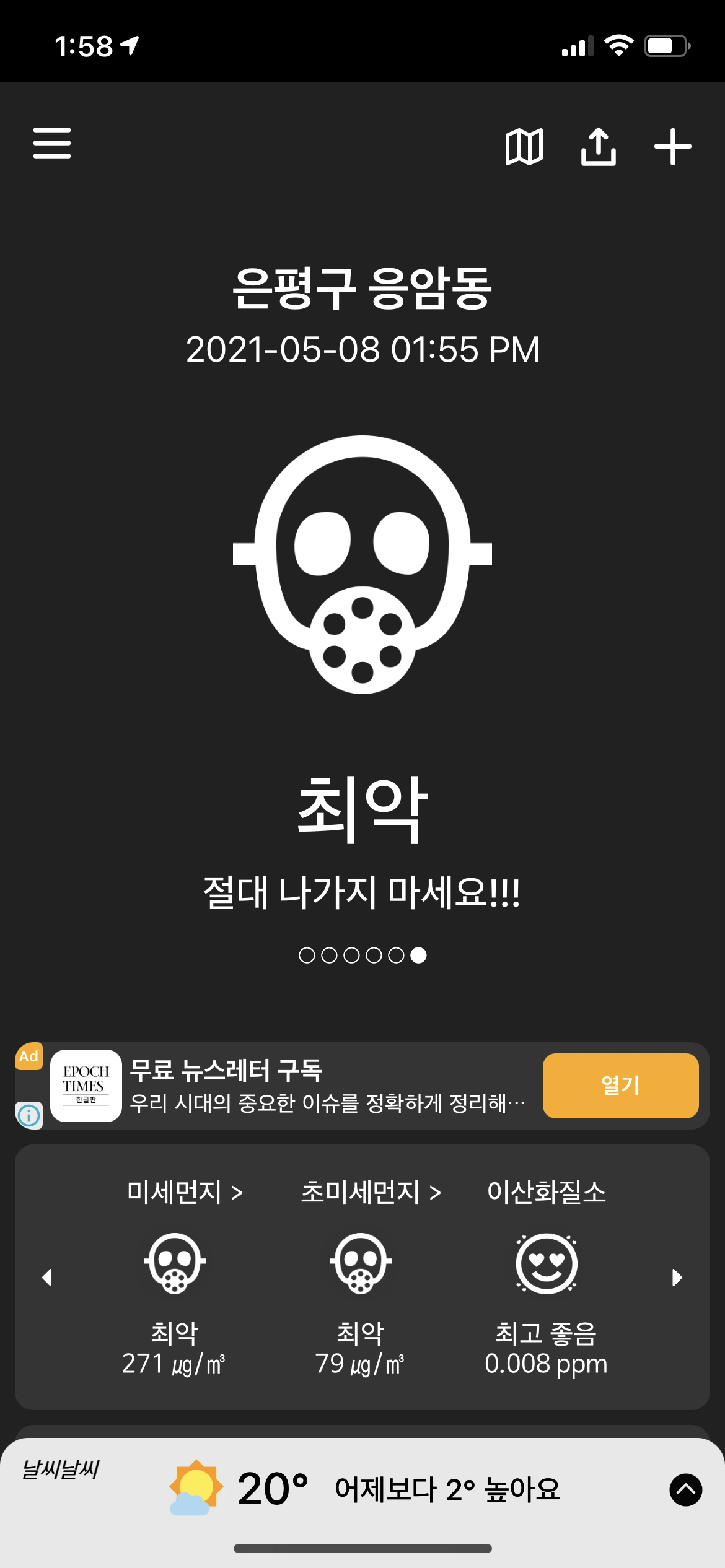 뿌옇고 탁한 하늘 아래로 걷고 있자니