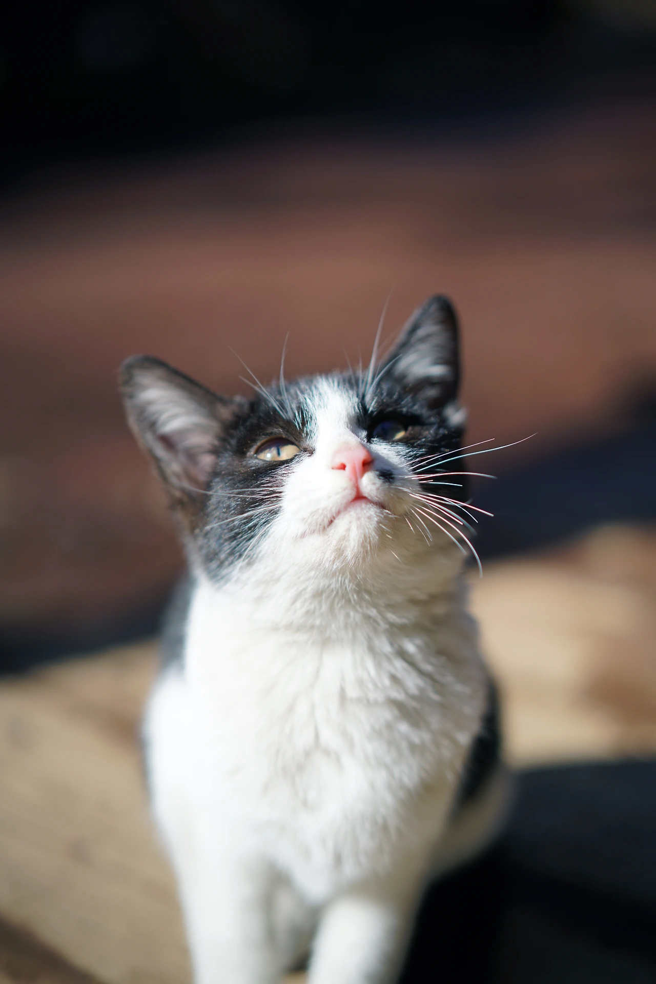 깜짝 놀라서 아래를 내려다봤더니 작은 새끼 고양이 하나가 우리를 빤히 보고 있었습니다.