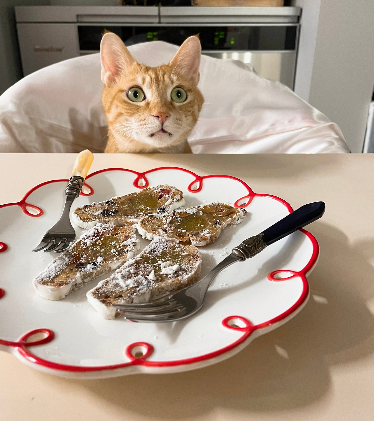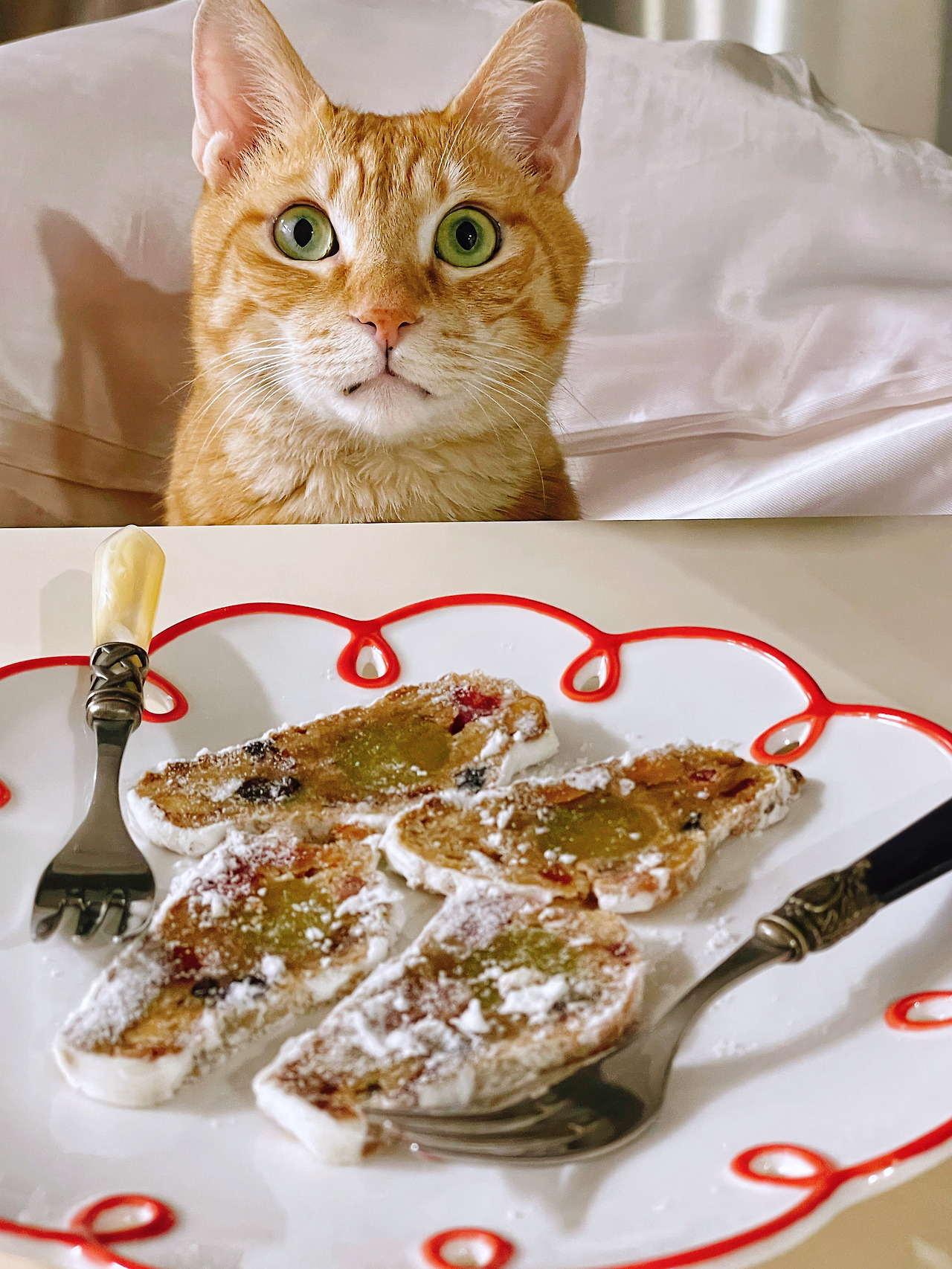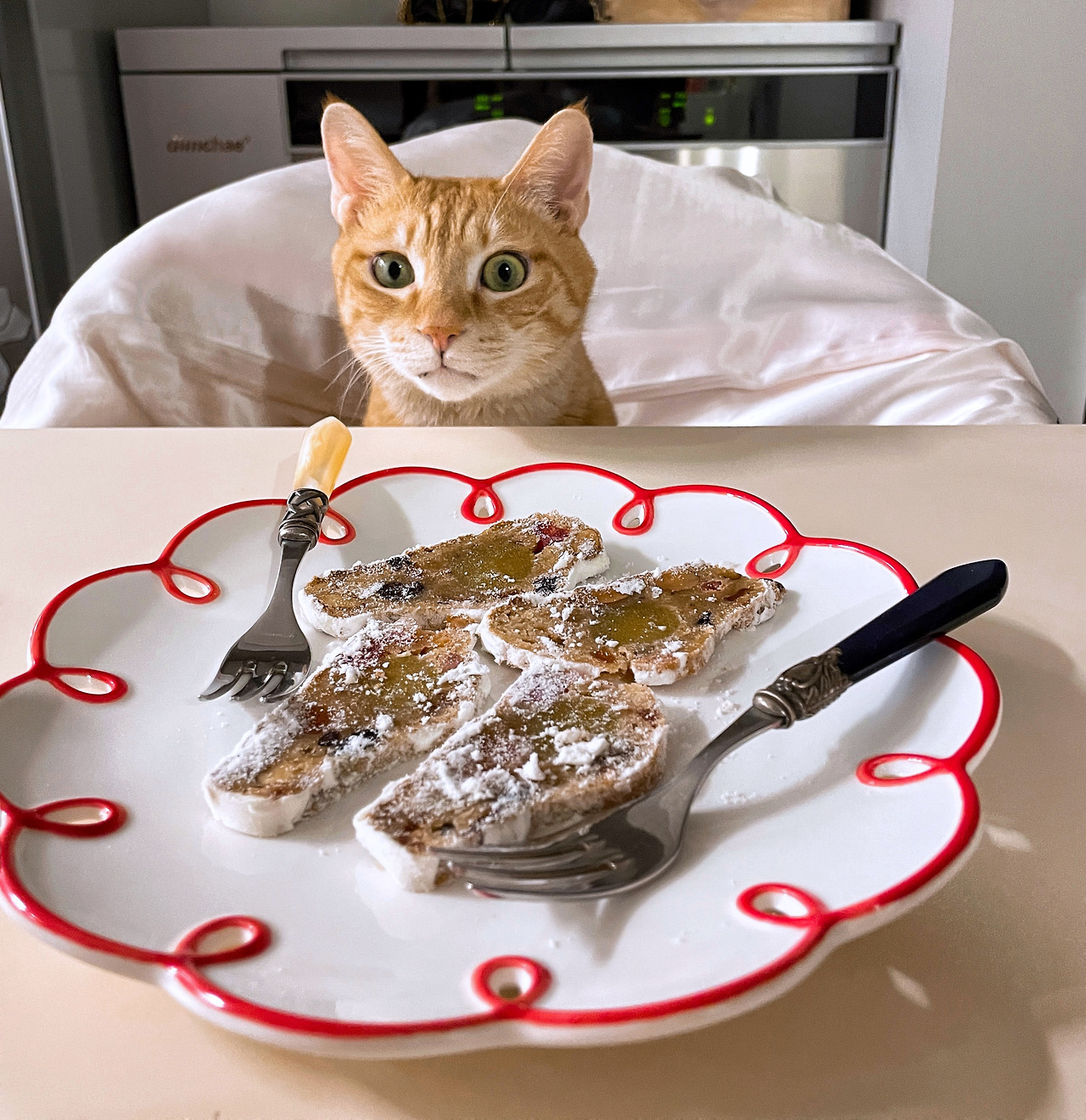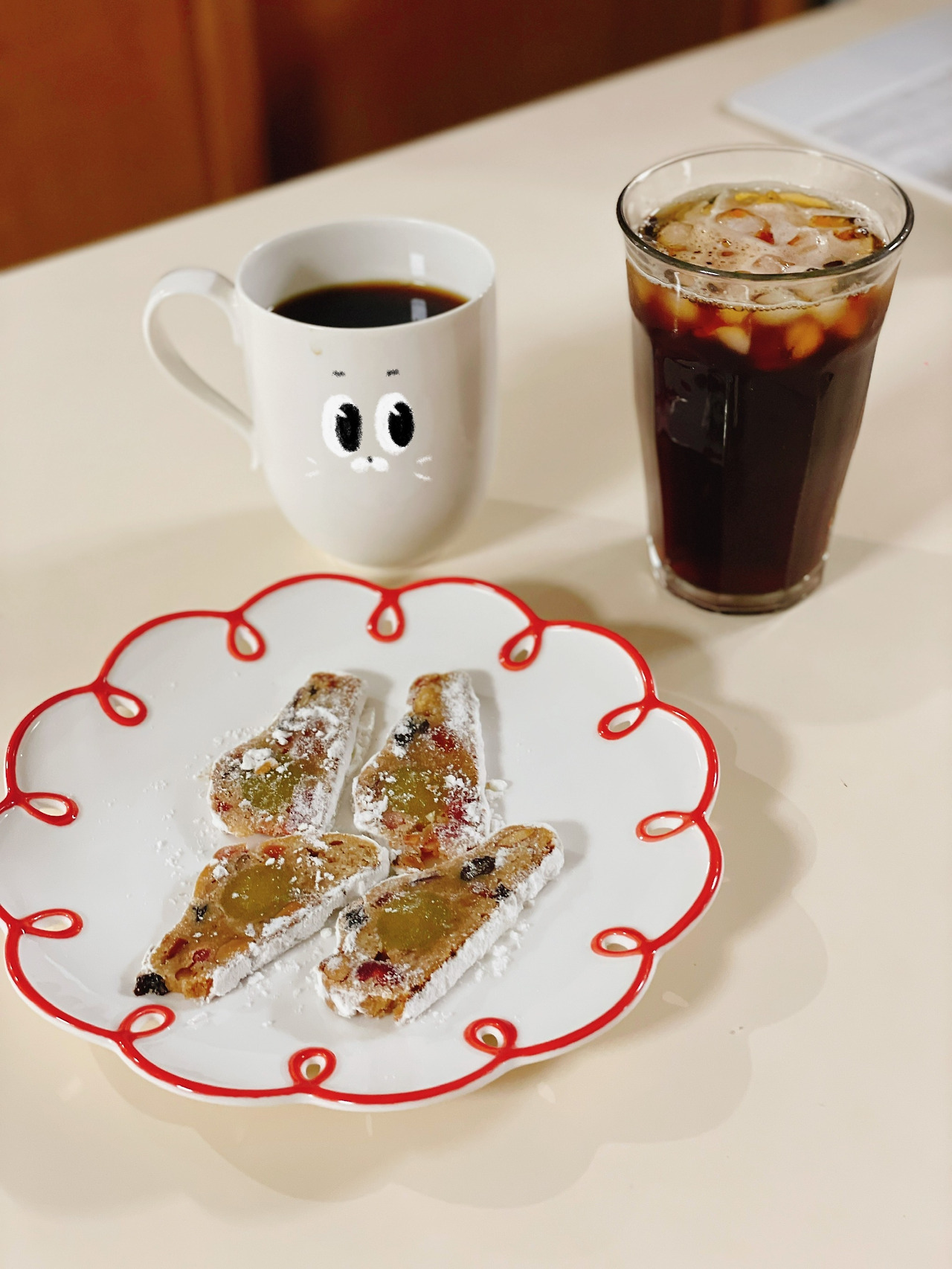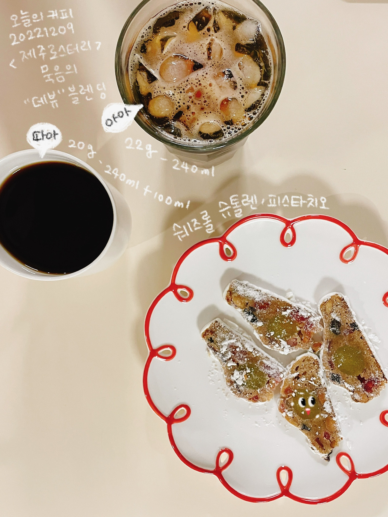 아무튼 나는 커피를 내리고 보라요정님은 슈톨렌을 썰어놓았는데