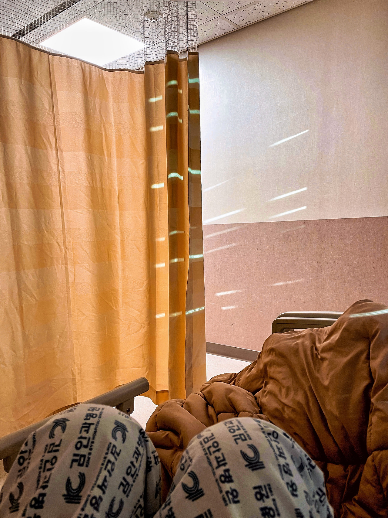 코로나 시대의 입원은 당연하게도 혼자밖에 안됩니다.간병, 병문안 다 안됩니다.