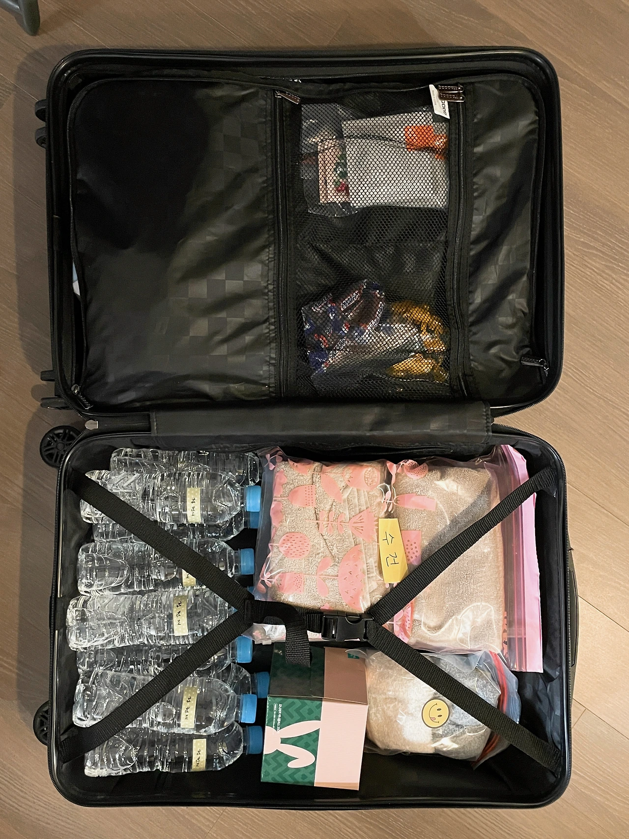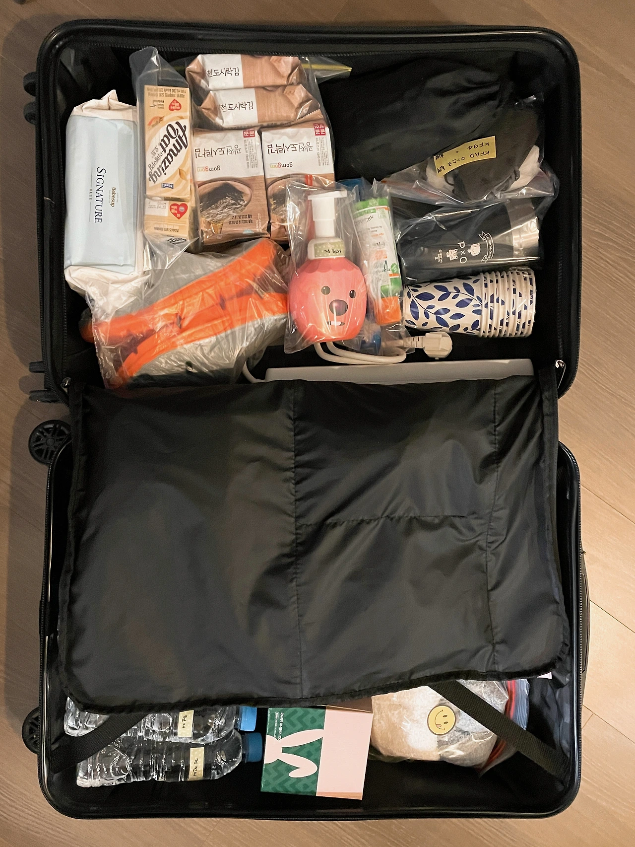 입원전 보라요정님(바깥양반) 인터넷으로 필요한 것들을 미리 사 가방을 싸주었습니다.