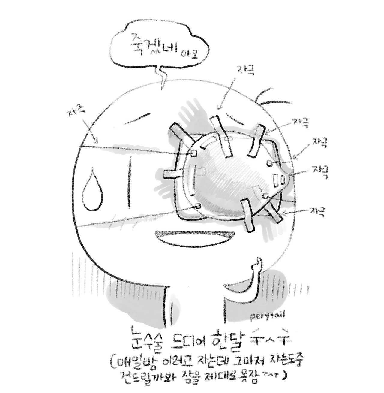 (테이프는 계속 붙여야 하니 한달동안 매일 요렇게 붙였다 저렇게 붙였다 ㅠ_ㅠ) 깨어있는데 반쯤 영혼이 가출한 상태로 지낸것 같았습니다.