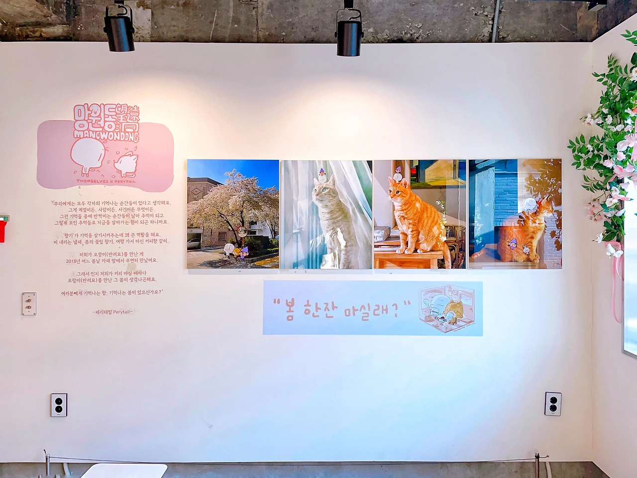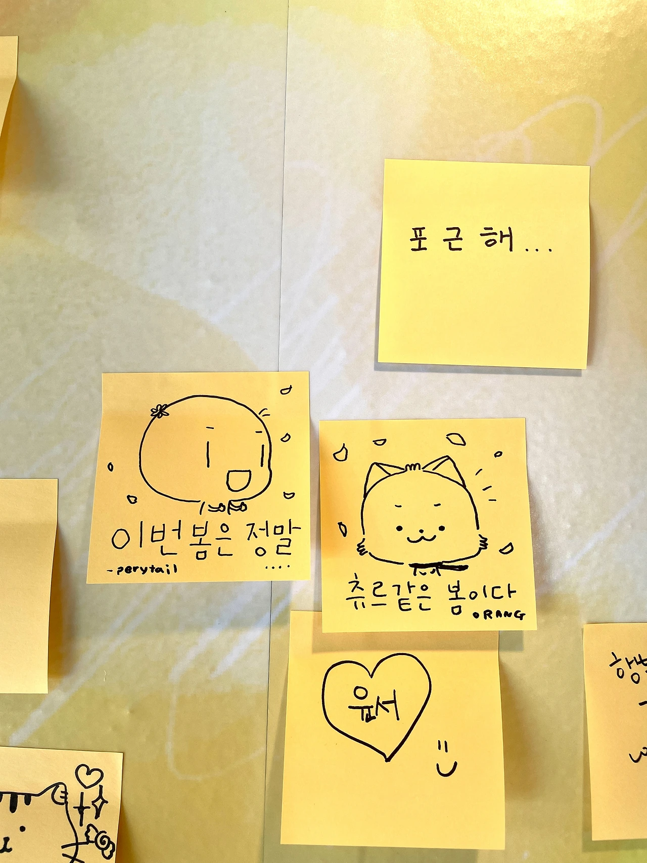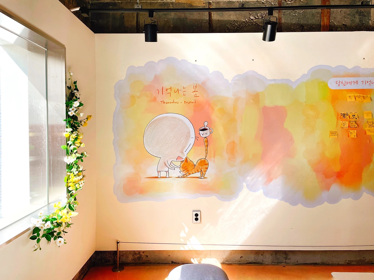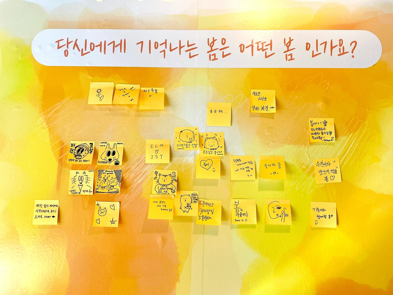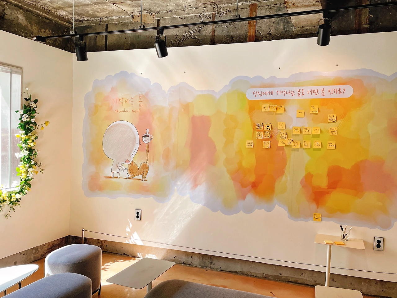 오셔서 봄 한잔 마시고 봄에 관한 이야기를 포스트잇에 남겨주세요.