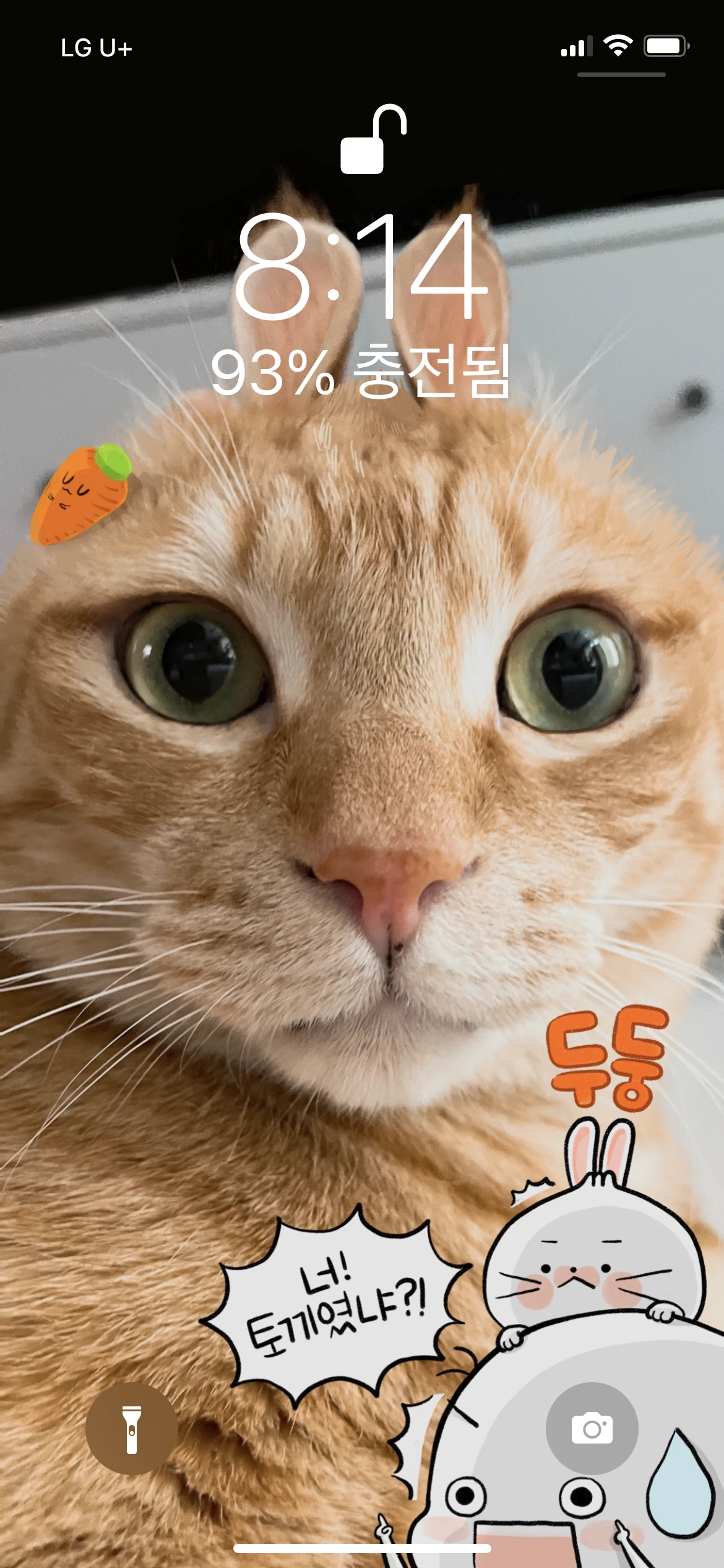 하면서 스마트폰 잠금화면으로 되어있는 오랑이 사진을 보여드리자