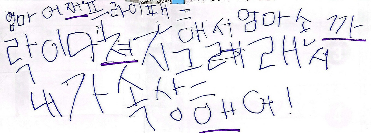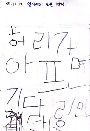 이면지를 잘라서 하고 싶은 말을 적으면서 놀았다. 이때 나에게도 편지를 많이 줬는데 몇 장을 육아일기에 붙여놓았다. 처음으로 아이에게 편지를 받은 감동이 기억난다. 특히 "엄마가 프라이팬에 손가락을 다쳐서 속상했다"는 다정함은 결코 잊지 못할 거다. 이제 성인이 된 아이는 이때의 일을 듣더니 이제는 그런 일로 속상하지 않는다며 웃었다. 그러게... 왜 다정함이 사라진 거니?... 정말 아쉽다.