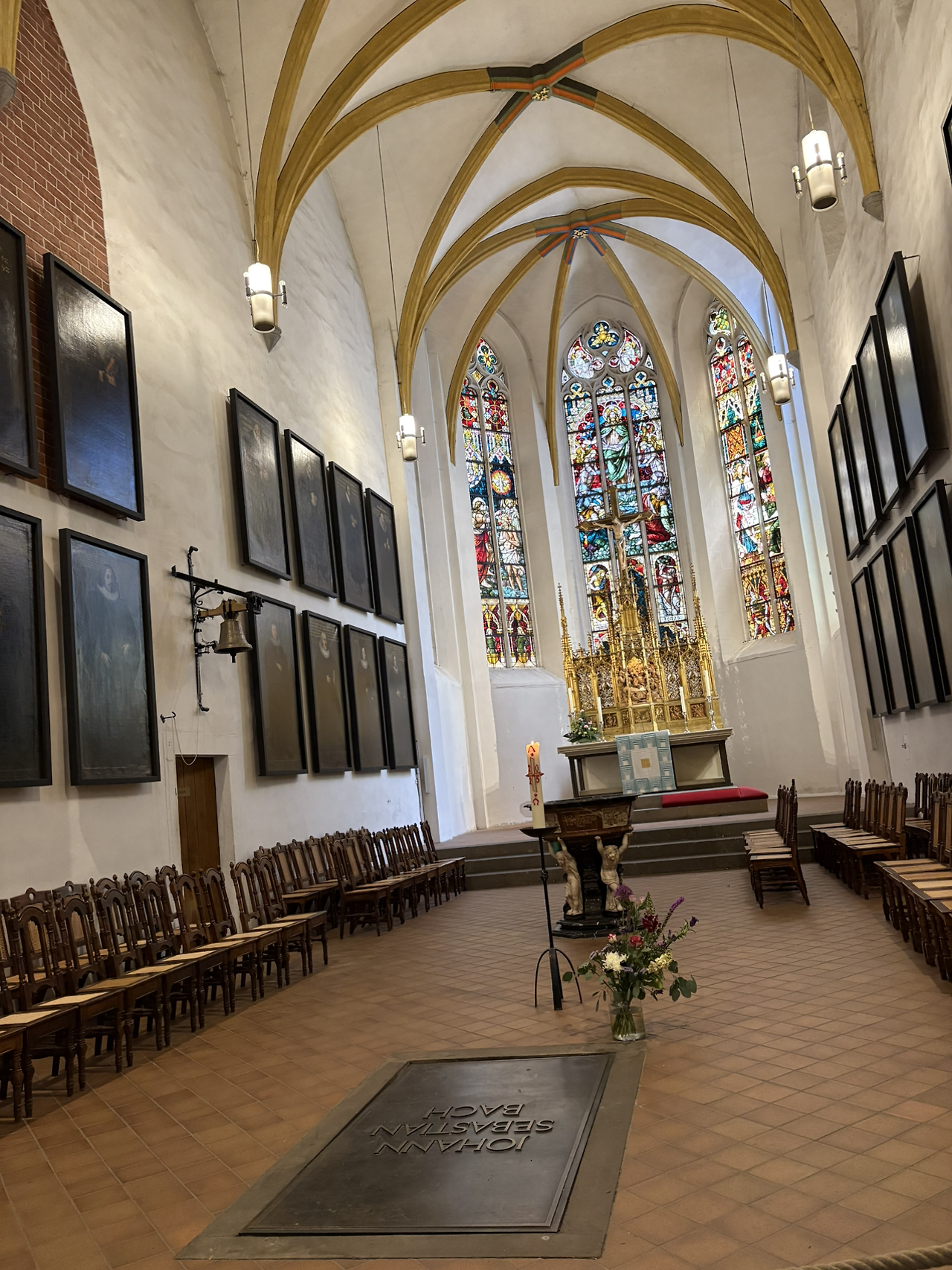 577km, 아우토반 시속 200km 달려가며 6시간이 지나 라이프치히에 도착했다. 사실 별다른 정보가 없이 가는 여행이라, 라이프치히에서 무얼 할지 열심히 찾아보다가 이곳에 성 토마스 성당이 있다는 것을 알게 되었다. 라이프치히 중심가에 위치한 성 토마스 성당은 음악의 아버지 바흐가 마지막 여생의 보낸 곳이라 한다. 절망을 표현할 때 자주 사용되는 토카타 푸가 라단조를 작곡한 바흐는 성당에서 오르간 연주를 하며 종교를 위한 작곡을 많이 했다. 종교가 삶과 예술에 깊이 관여했던 중세 시대에 순응하듯, 바흐는 성실한 종교 음악가로 신을 위해 일했던 것 같다. 그래서 바흐의 무덤과 비석은 성 토마스 성당에 안치되어 있고 한 편의 스테인글라스에서는 바흐의 초상화도 찾아볼 수가 있다. 성당 한편에는 바흐의 흔적들을 전시해 놓은 작은 공간이 있다.