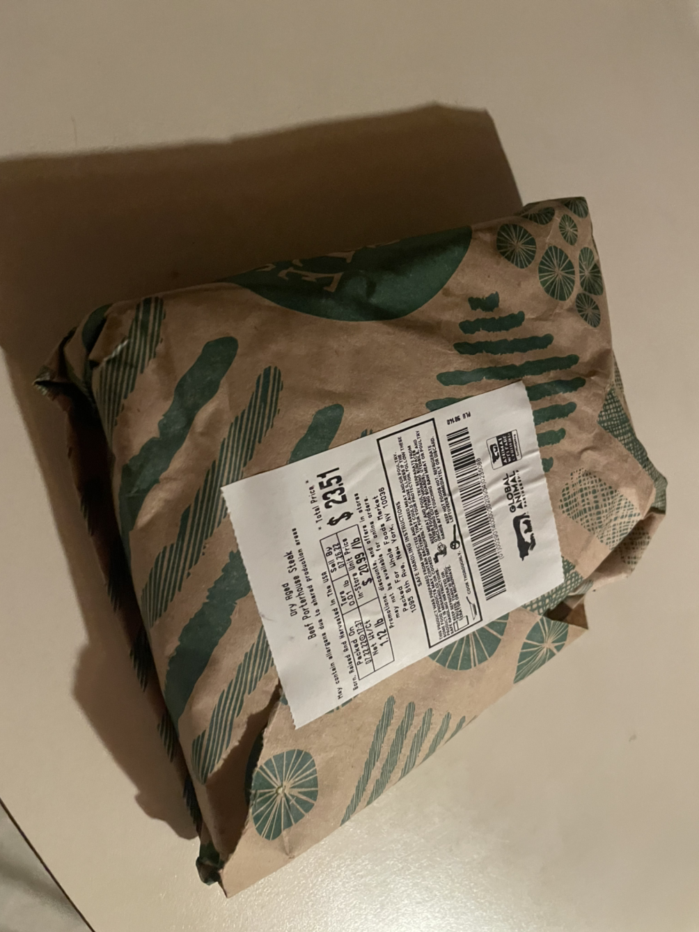 참고로 홀푸드에서는 비닐봉지를 쓰지 않는 다. 비닐이 아예 없다. 스테이크 고기도 종이에 싸서 준다. 드라이에이징이라 물이 그나마 적지, 다른 것은 피 뚝뚝 떨어진다.