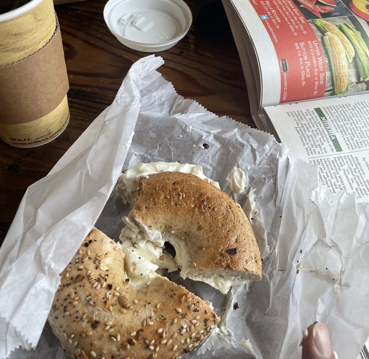 아침에 베이글 먹으러 혼자 가보았다. 아침에 크림치즈가 듬뿍 처발린 베이글을 먹었다. 너무 많이 급히 먹었다. 난 베이글이 그 동안 지우개맛인줄 알았다. 너무 질기고 너무 퍽퍽했다. 그러나 동네 베이글가게에서 직접 구운 빵은 굉장히 부드러웠다. 크림치즈 역시 크림 같아서 먹다가 뚝뚝 흐를정도 였다. 내가 아는 크림치즈는 오로지 필라델피아 크림치즈 한 종류만 있는 게 아니었구나. 게걸스럽게 다 먹었다. 그런데 차 없이 다니기에는 생각보다 멀었다. 금방 더워졌다.