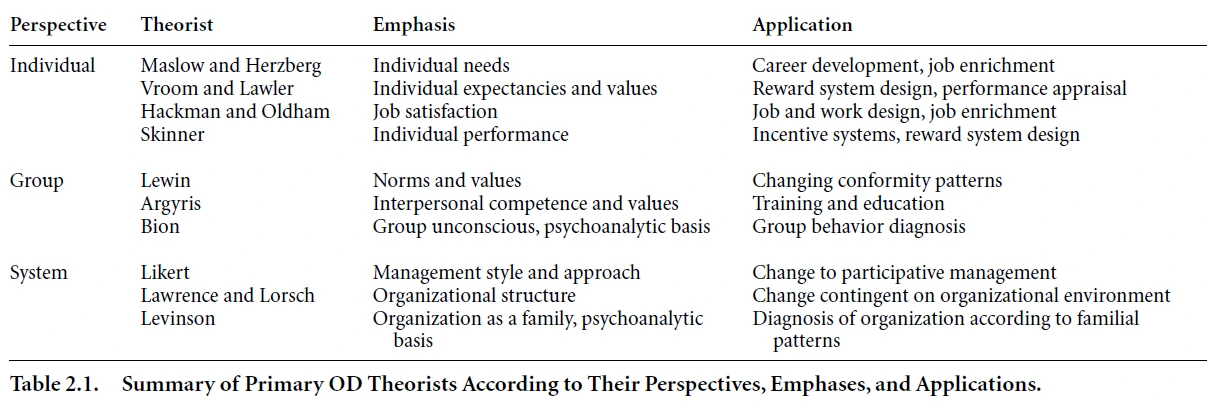 조직개발은 그보다 이전에 등장한 많은 이론과 연구에 도움을 받고 있다.