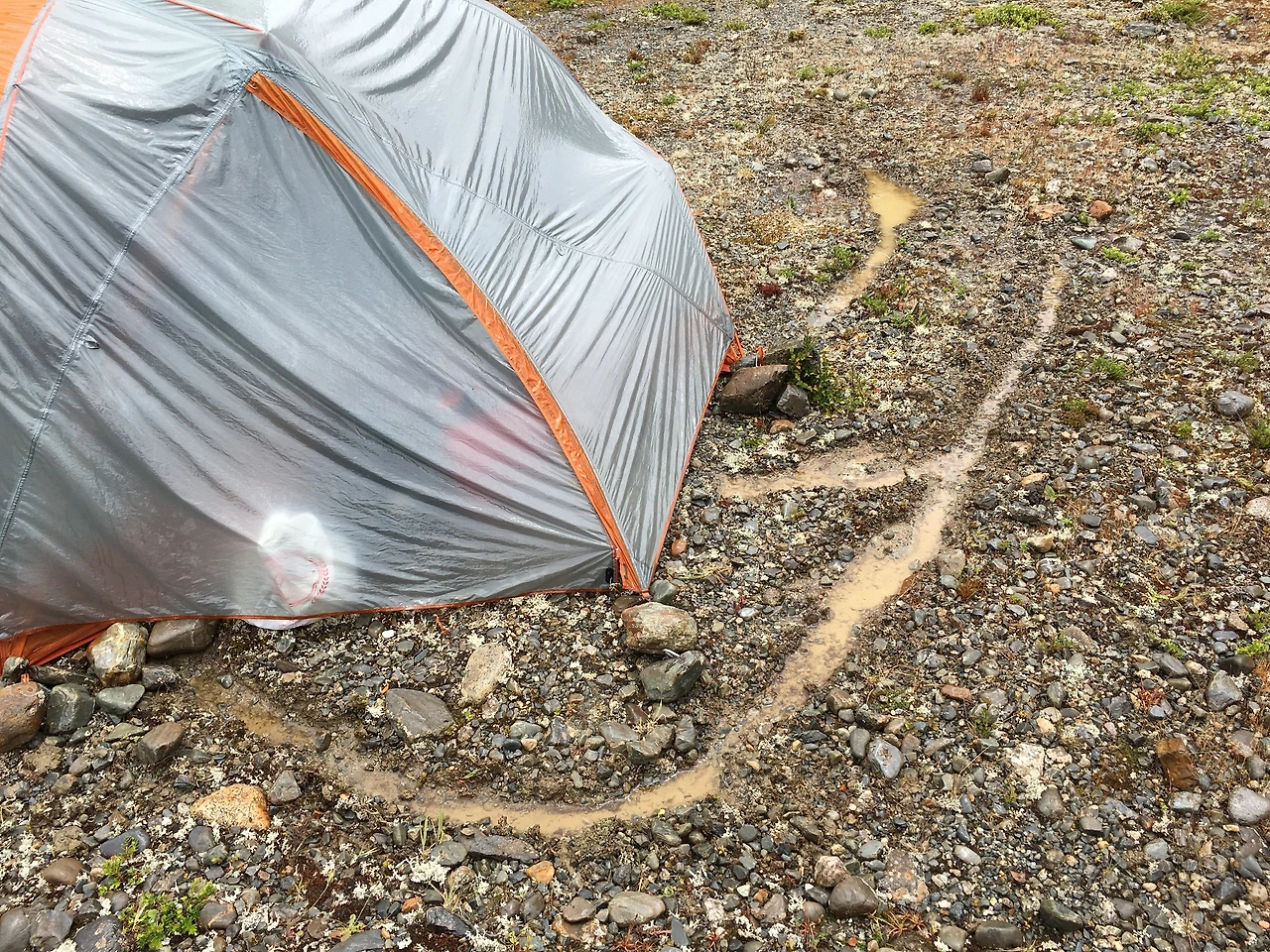 춥고 서러운 것도 문제지만 더 큰 문제는 물이었다. 이미 며칠 동안 와일드 캠핑을 했던 우리였기에, 남아있는 물은 1리터가 채 안되었다. 근처에 냇가도 없으니 물을 떠 올 수도 없었다. 갈증을 해소하는 정도로만 물을 마시면 하루는 버틸 것 같았는데, 요리를 하고 양치질을 할 물이 없었다. 남아있던 빵 몇 조각과 참치 한 캔, 소시지를 구워 하루 동안 아껴서 나눠 먹는 것으로 요리에는 물을 쓰지 않기로 하고, 양치를 하기 위해 냄비를 텐트 바깥에 두고 빗물을 받기 시작했다. 힘차게 내리던 비는, 텐트를 적시는 데에 매우 효과적이었지만 냄비를 채우는 데는 아무런 역할을 하지 못했다. 아침부터 받기 시작한 빗물은 밤이 되어서야 겨우 입을 한번 헹굴 수 있을 정도가 되었다. 모이는 빗물은 더딘데, 눈가에 맺히는 서러움의 속도는 너무나 빨랐다. 어제부터 내리던 빗방울은 새벽이 되니 더더욱 굵어졌다. 하루가, 정말로 이 단 하루가, 너무나도 길었다.