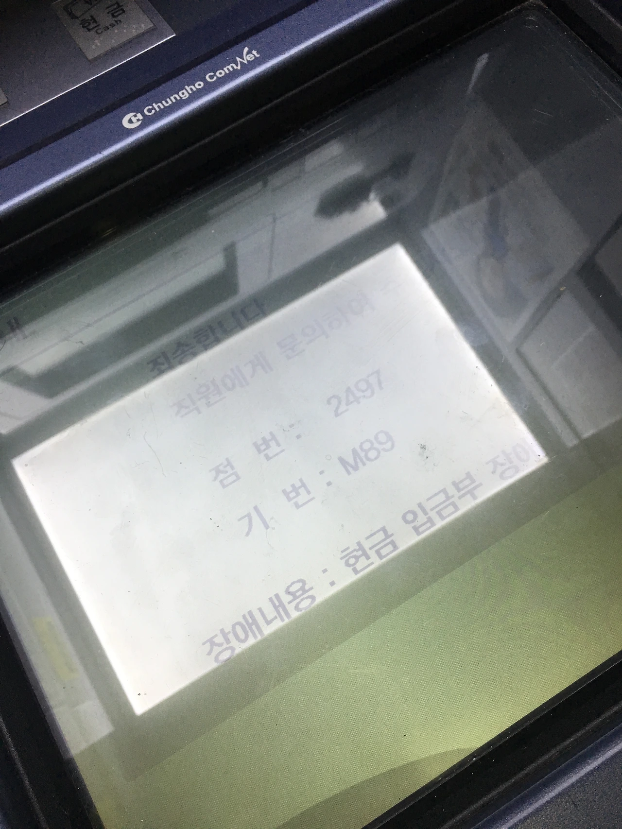 그렇게 ATM을 찾아 돈을 넣고 ‘입금하기’를 누르자마자 갑자기 기계 장애가 발생했다는 문구가 화면에 떴다. 아니 왜…???? 평소에 단 한 번도 이런 일이 없었는데 왜 하필 오늘 지금 비행기를 타러 가는 이 시간에…??? 조금 기다리면 되겠지 싶었지만 계속해 묵묵부답인 ATM. 하는 수 없이 은행에 전화해 상황을 설명하니 기계 오류라며, 기계에서 돈 회수해서 입금하면 가족에게 연락 줄 테니 걱정 말고 떠나란다. 휴. 쉬운 것이 없다.