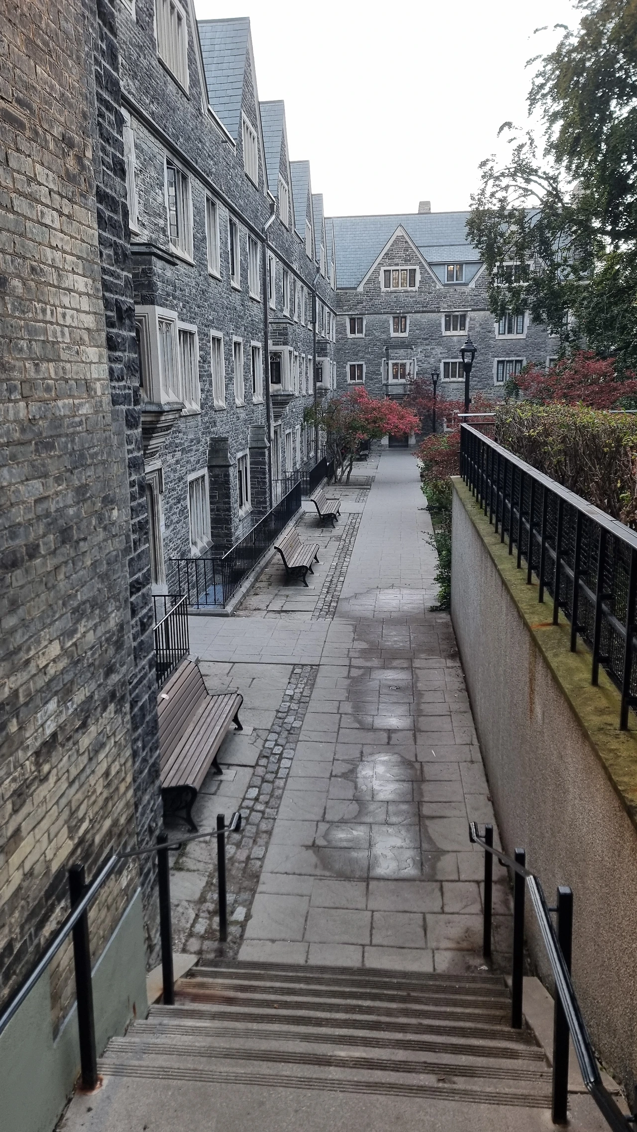오늘 아침은 이 멋진 원목 asymmetrical bench 에 앉아 사진을 정리하고, 아침를 추스리며, 마음을 가다듬는다. 토요일 이른 아침부터 Hart House 의 Great Hall 에서는 토론토대 학생들의 토론 대회가 한창이다. 아마도 정치가나 입법 의원을 꿈꾸는 학생들 일지니..