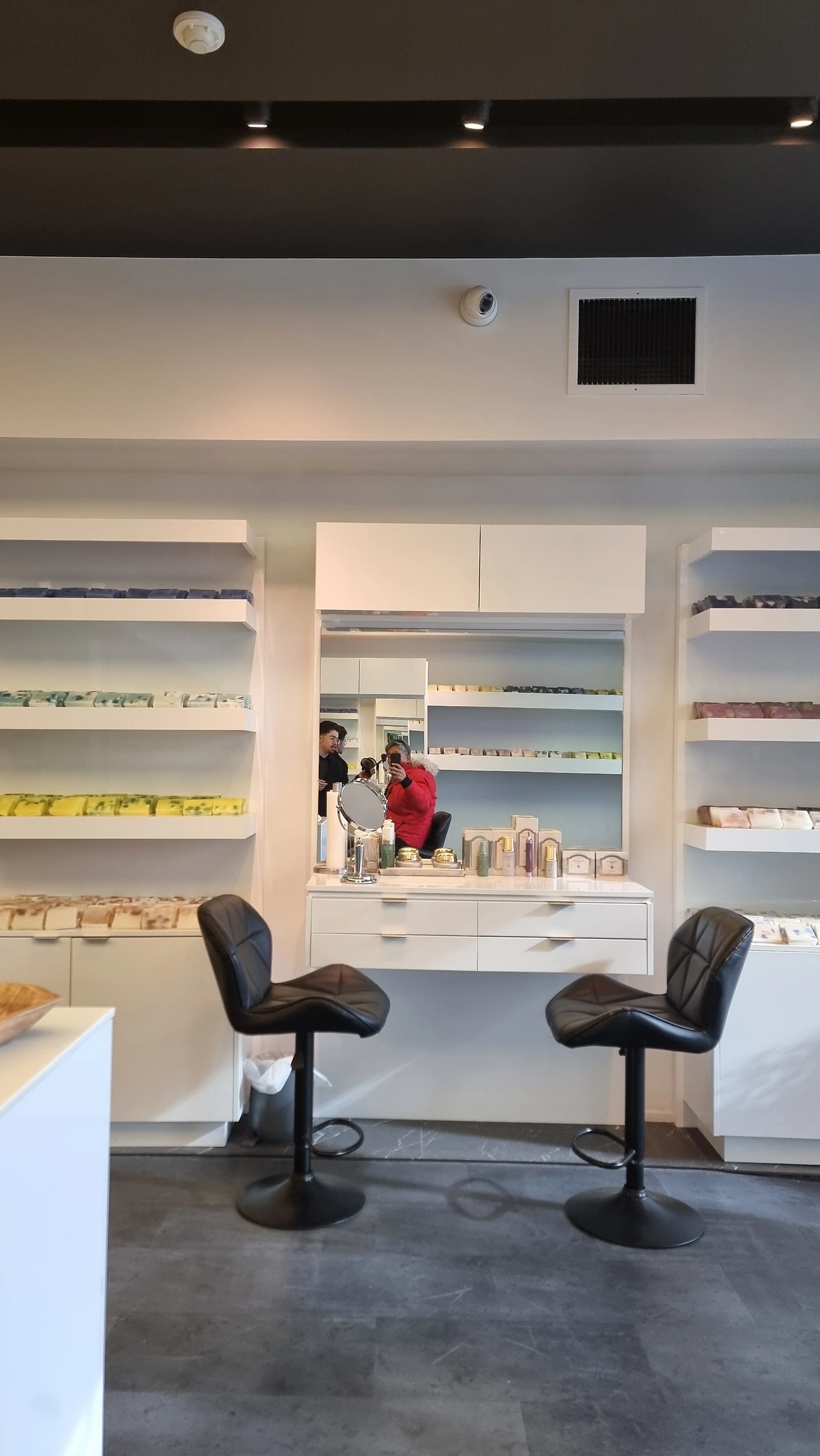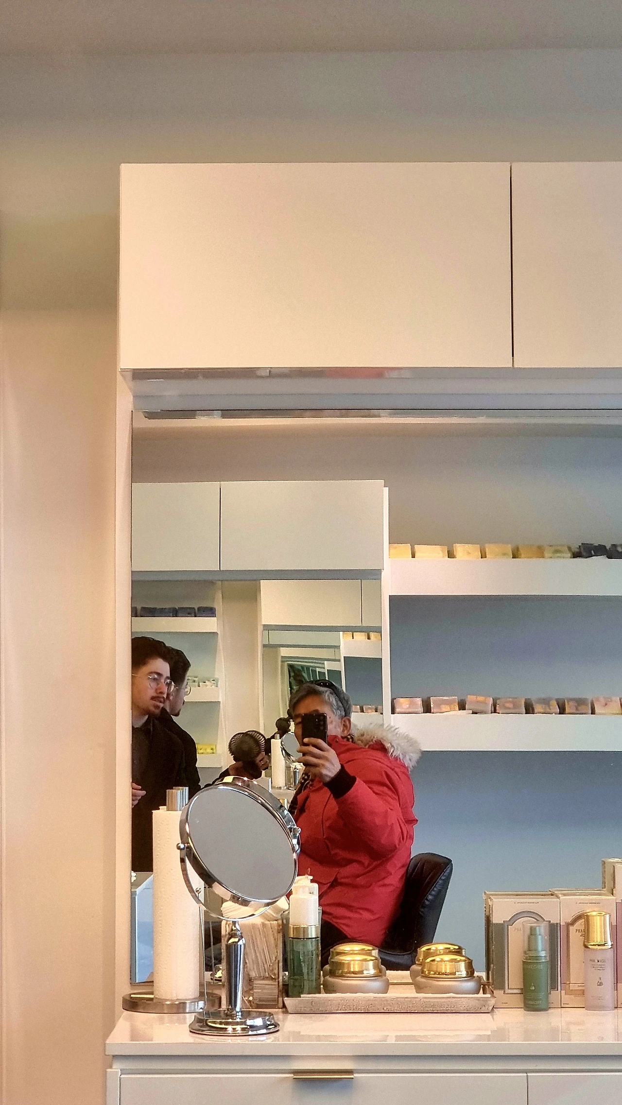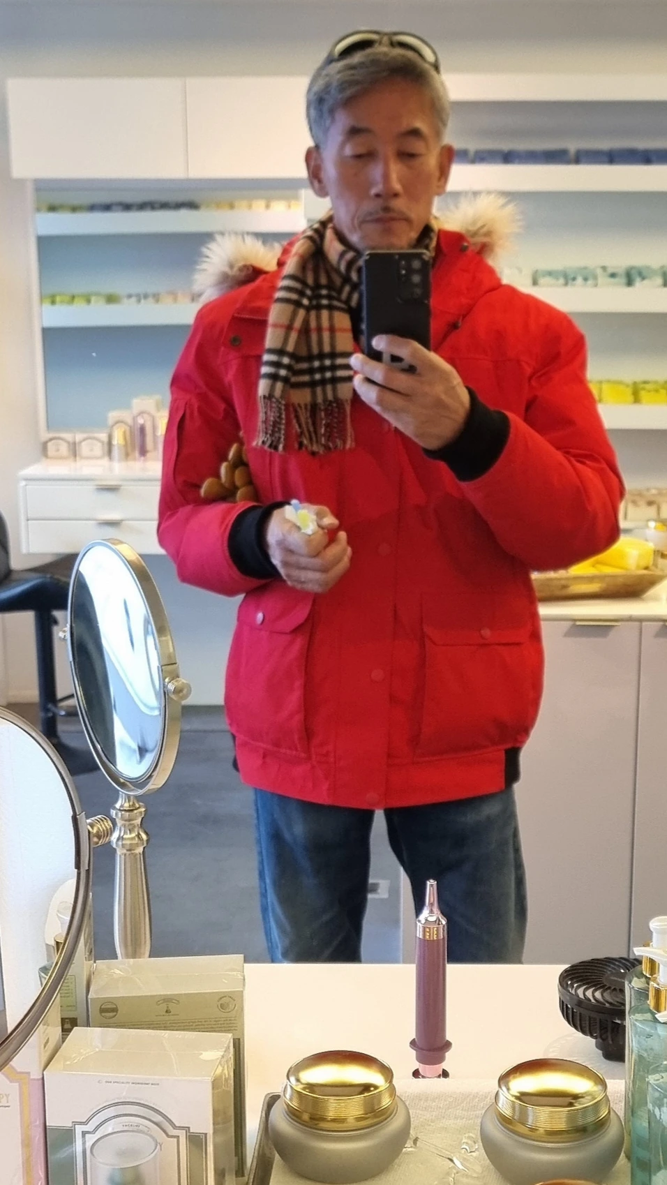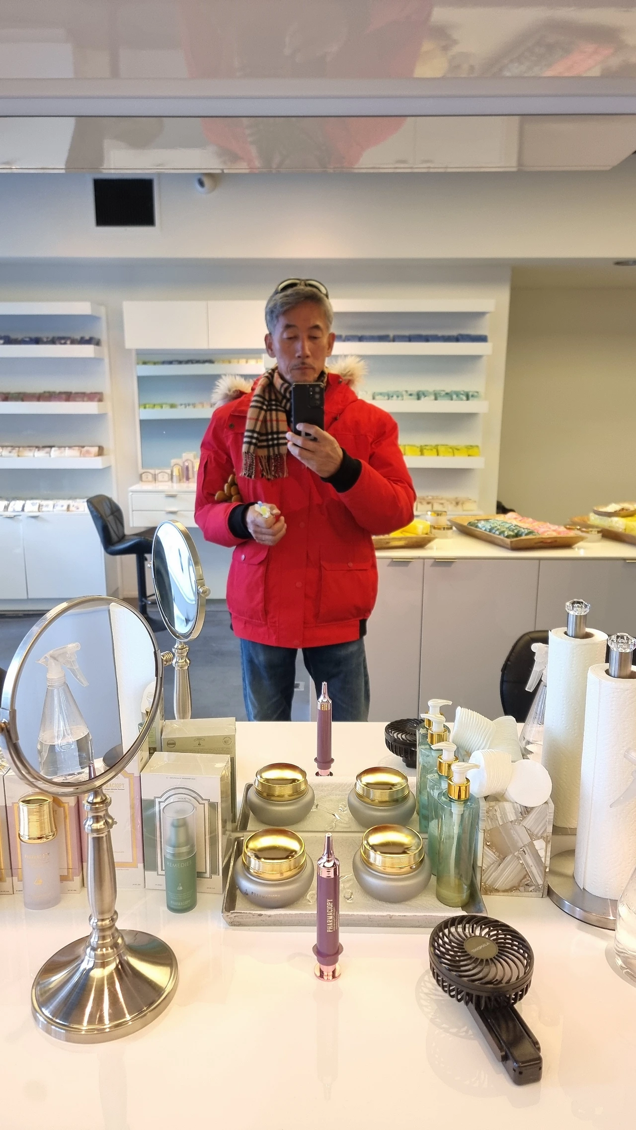 좌간 그렇게 해서 그 말발 좋은 중동계인 듯 보이는(인종 차별 아님) 세일즈 가이에 이끌려 샵 안으로 들어섰는데, 이후부터 녀석은 내 눈 아래의 다크 서클을 제거해준다면서 일사천리로 자기들이 팔고 있는 FaceLift 기능성 화장품을 선전하기 시작했고, 결국 마치 가격이 터무니없이 싸다는 tone으로 300불 이라는 거금의 가격을 제시했다. 이놈 미친겨..? 그러며 초대형 거울로 바라본 내 얼굴은 다크 서클이 사라져 있는 듯했고(근데 사실 난 그런 서클이 애초에 없었다), 눈 아래가 팽팽하게 펴진 느낌이었다. 사실 문방구용 풀만 조금 발라도 피부 정도는 팽팽해지는 거 아닌가! ㅎ