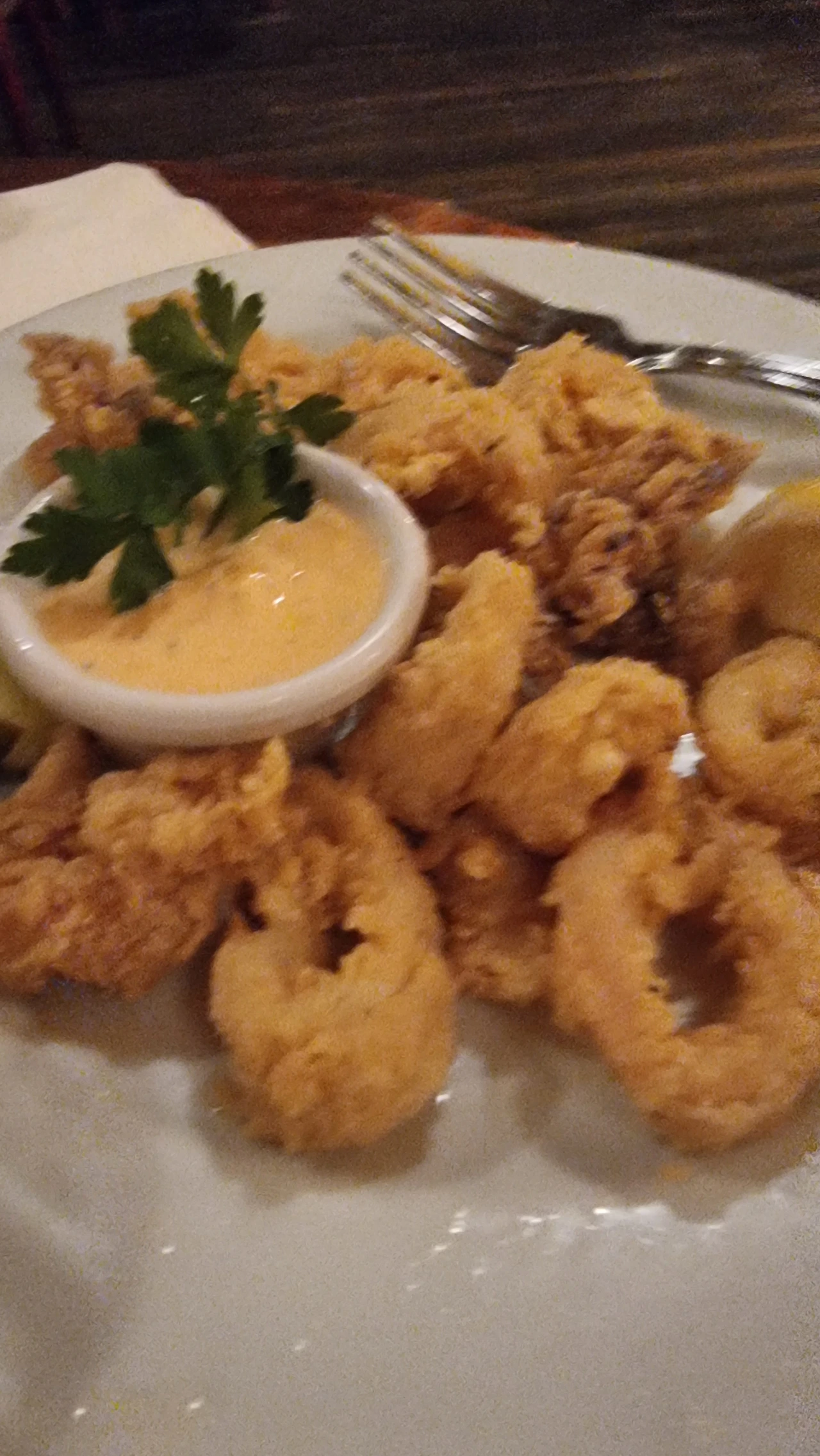 제임스에게 칼라마리 튀김을 주문하면서 더 바짝 튀기라고 주방에 부탁하라 했더만, 이번엔 제대로 잘 튀겨 겉바속촉 버전으로 나왔다. Thank you James! 제대로 튀겨나왔네! 했더니, 제임스는 주방에 몇번를 이야기 했다고 신나했다. 감사!