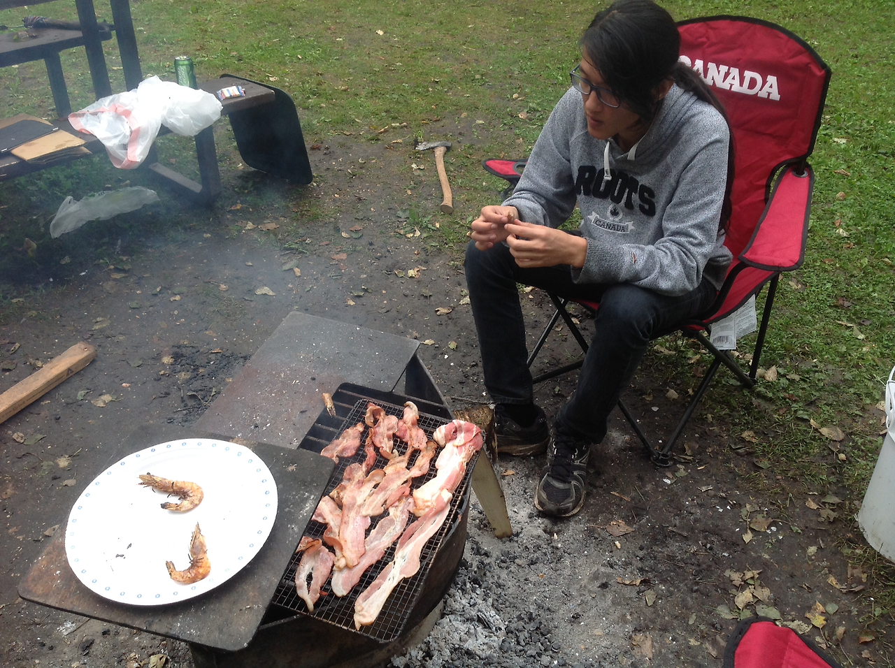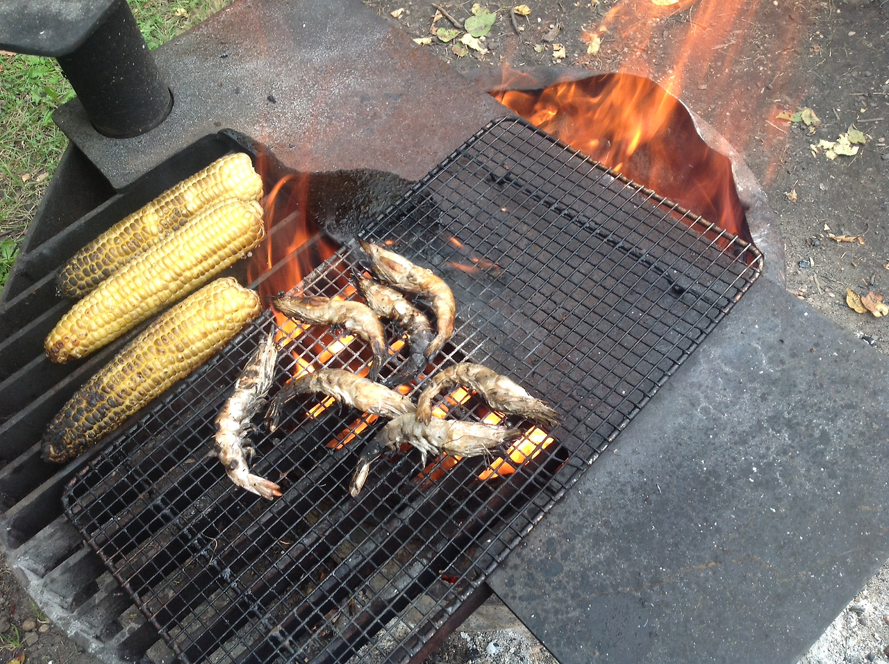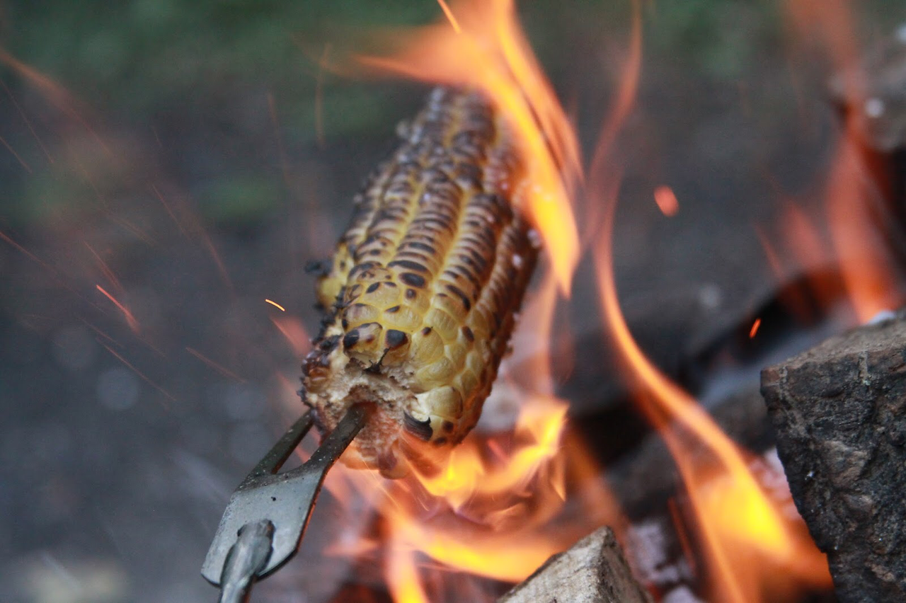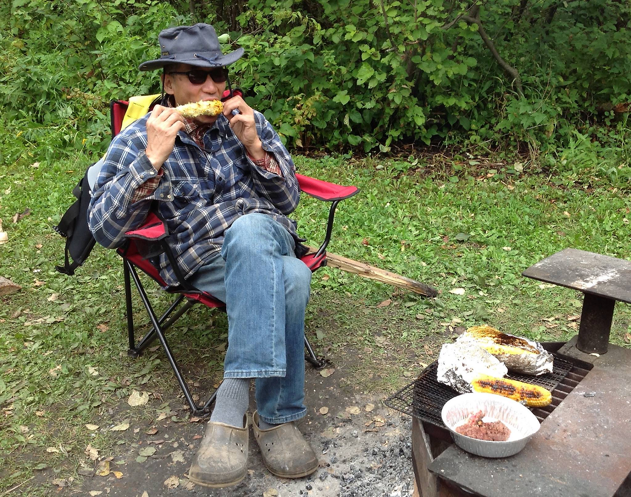 카누 낚시에서 돌아오자 마자 아들아이는 일인승 카약을 끌고 다시 호수로 나갔고 난 모닥불에 옥수수를 제대로 구워 먹기 시작했다. 캐나다의 옥수수는 정말 맛있다. 특히 sweet corn 은 달면서 즙이 많아 먹으면서 계속 감탄을 하게 된다. 이 맛있는 옥수수는 자신의 농장에서 직접 따와서 파는 농부 아줌마에게 사와 모닥불에 구운거다. 그러니 얼마나 더 맛있었겠는가.
